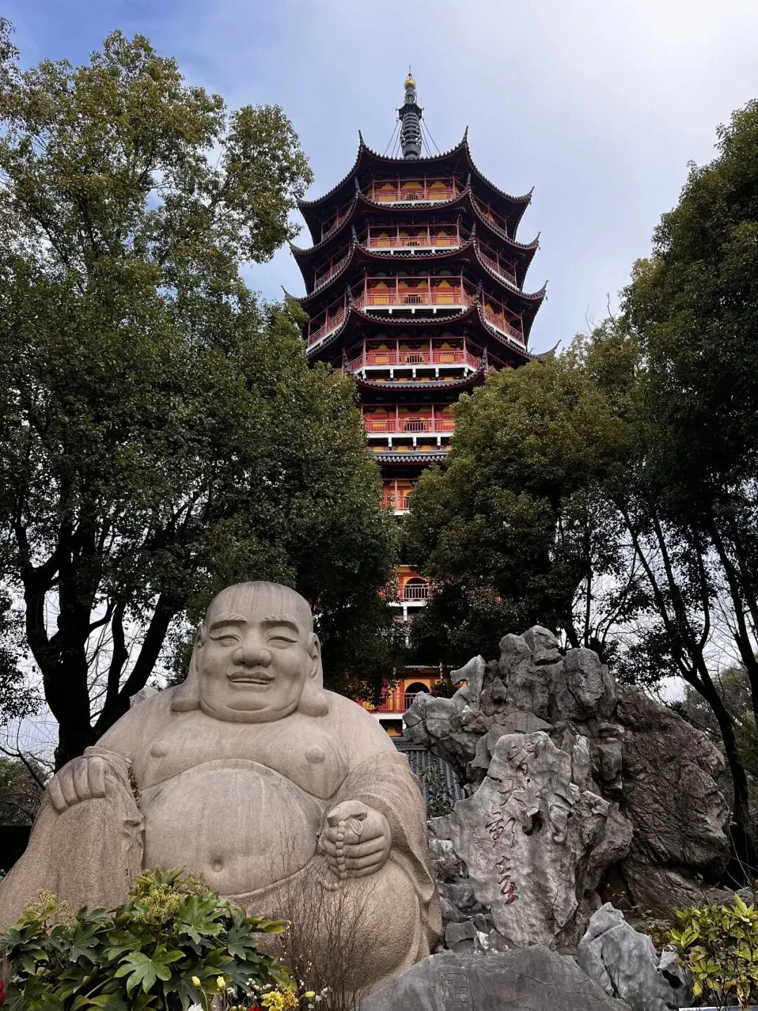 进入寺内,一尊弥勒佛笑脸相迎,北寺塔矗立其后。