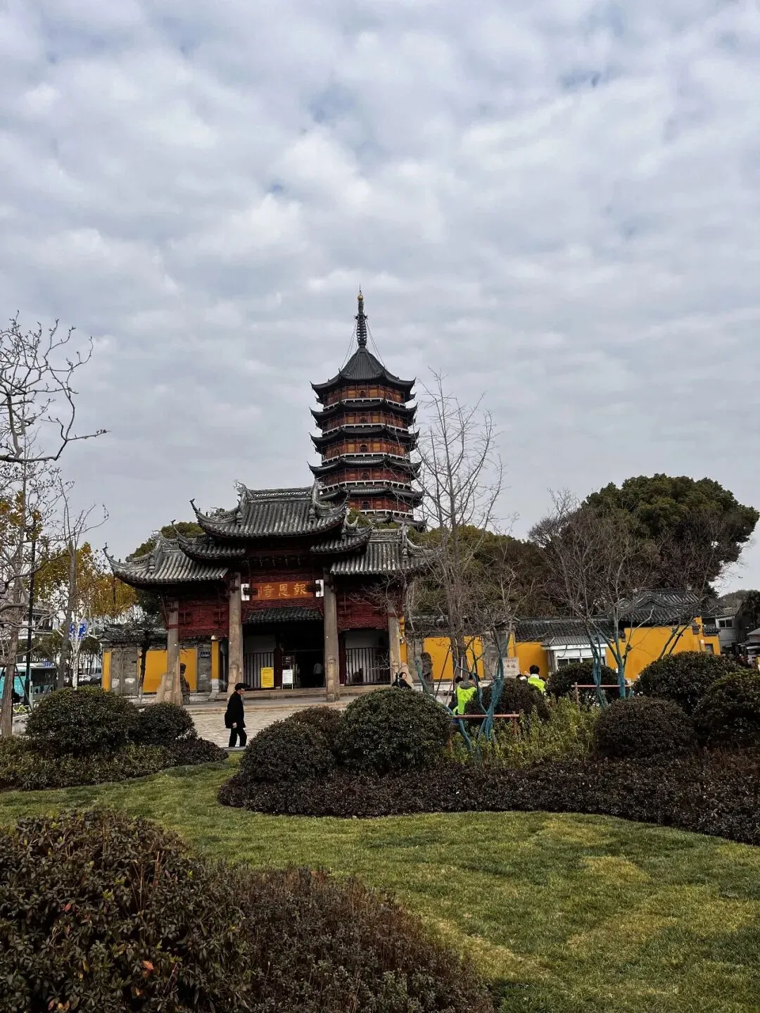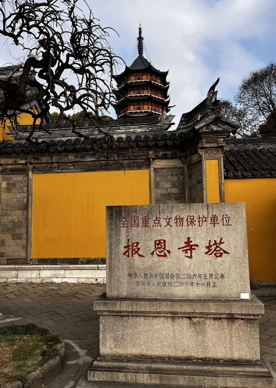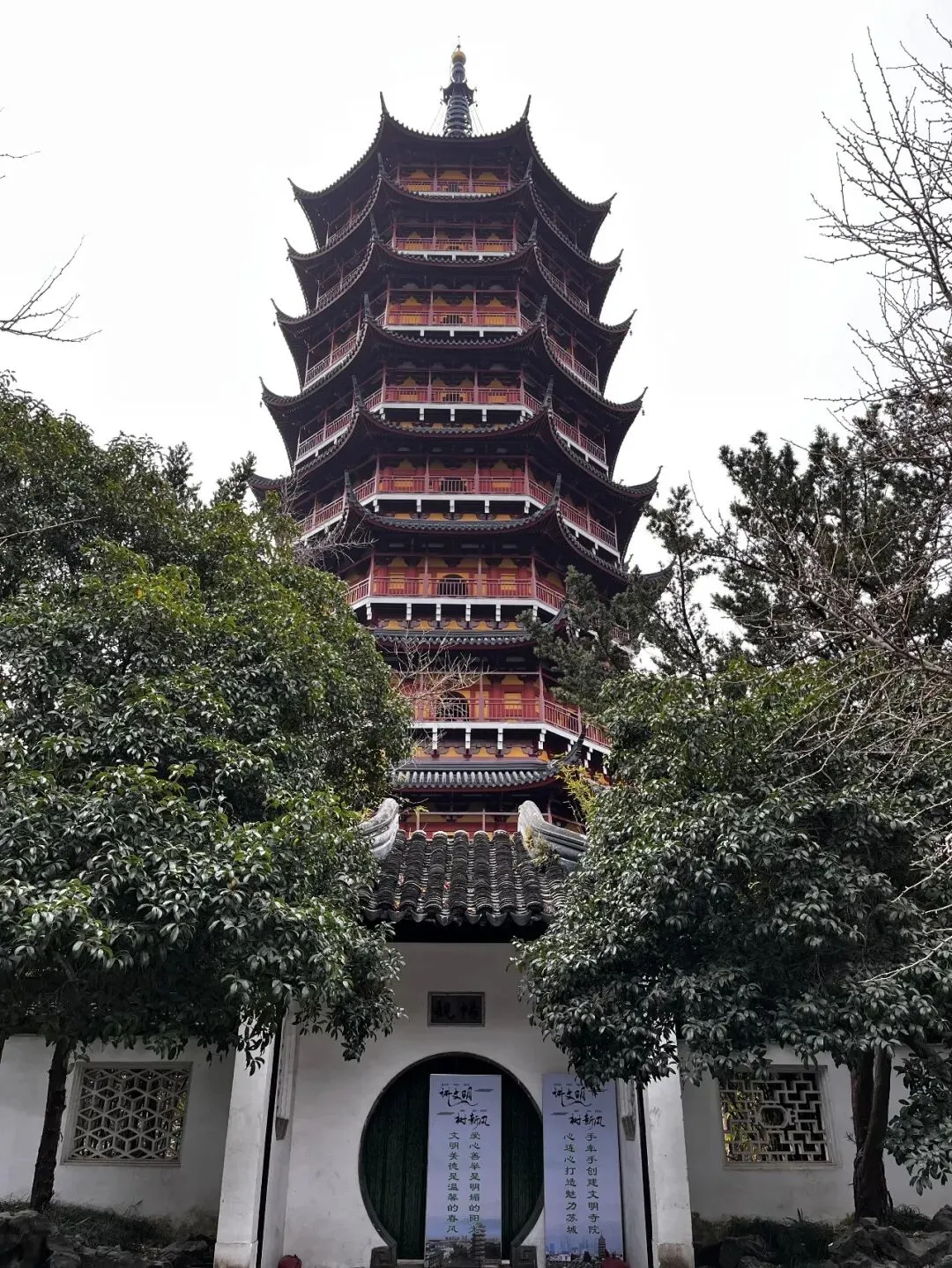 北寺塔即报恩寺塔,塔身主体始建于南朝梁时,后历经战火毁坏与重建,现存塔体为南宋绍兴二十三年 (1153年)重建,并保留了宋代塔基、外壁等原始构造,明清及现代又历经多次修葺。北寺塔为九级八面砖木楼阁式结构,塔高76米,是江南现存最高的古塔,享有“吴中第一古刹”之美誉。其独特的双层套筒设计,精巧的木构回廊与斗拱藻井,是宋代建筑艺术的杰出典范。北寺塔是苏州古城的重要标志,2006年,被国务院公布为第六批全国重点文物保护单位。等修缮完毕后再来。