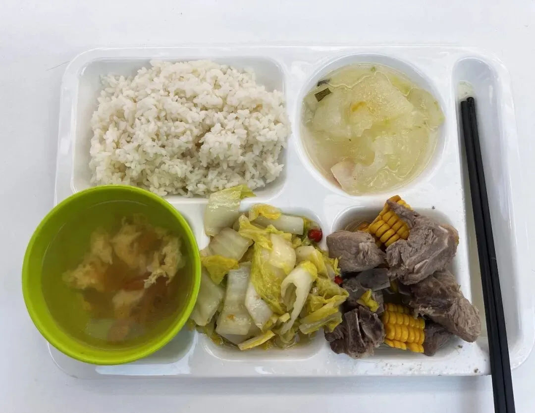 事先已在学校官微上预约,刷身份证即可进入。此时十一点半,进学校莘园食堂就餐,一荤二素一汤一米饭,只要10.5元,