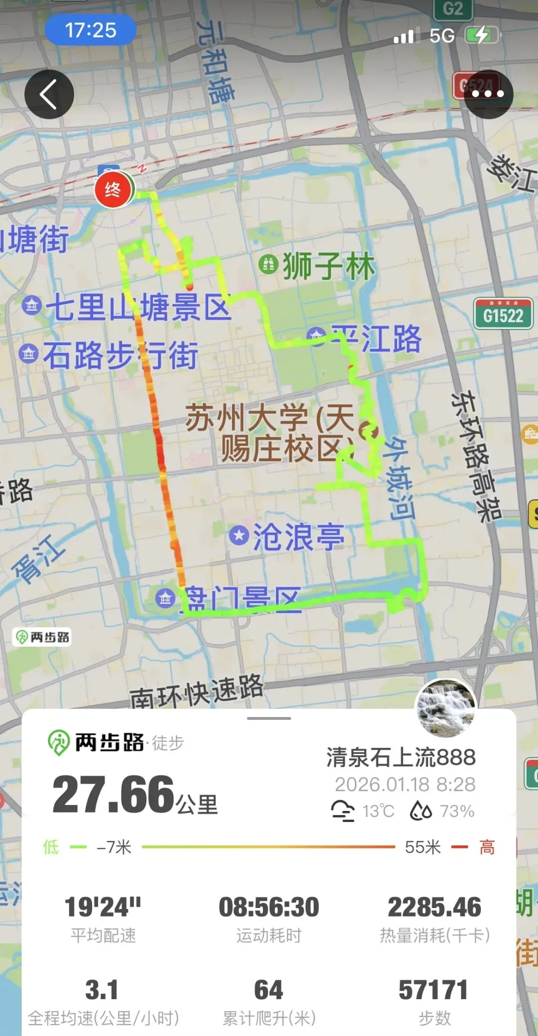 今天在苏州徒步28公里。