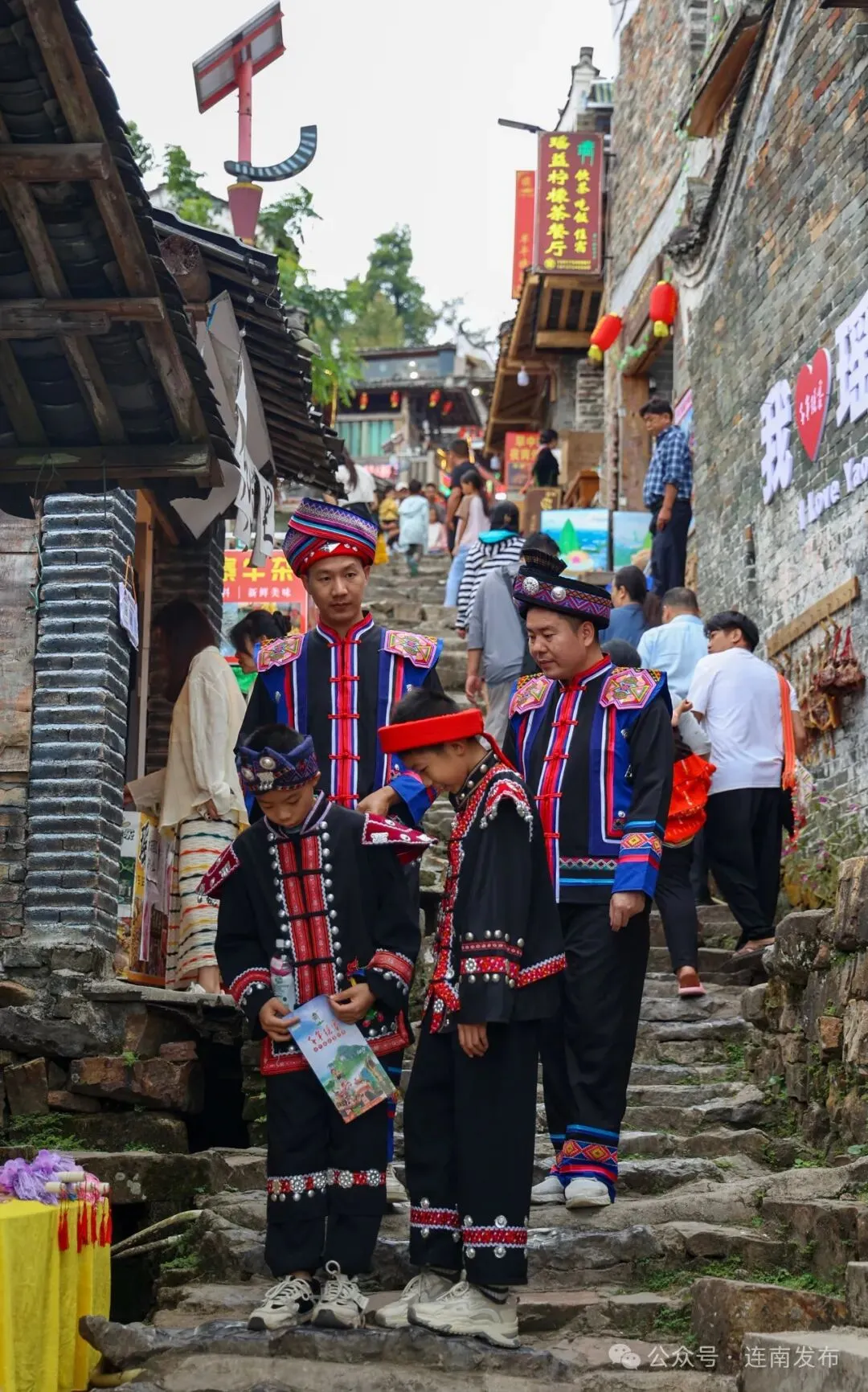 千年瑶寨也是热闹非凡。这里是世界上规模最大、最古老、最有特色的瑶寨。国庆期间,寨子里人来人往,游客们穿梭在古老的建筑之间,欣赏着独特的瑶族建筑风格。