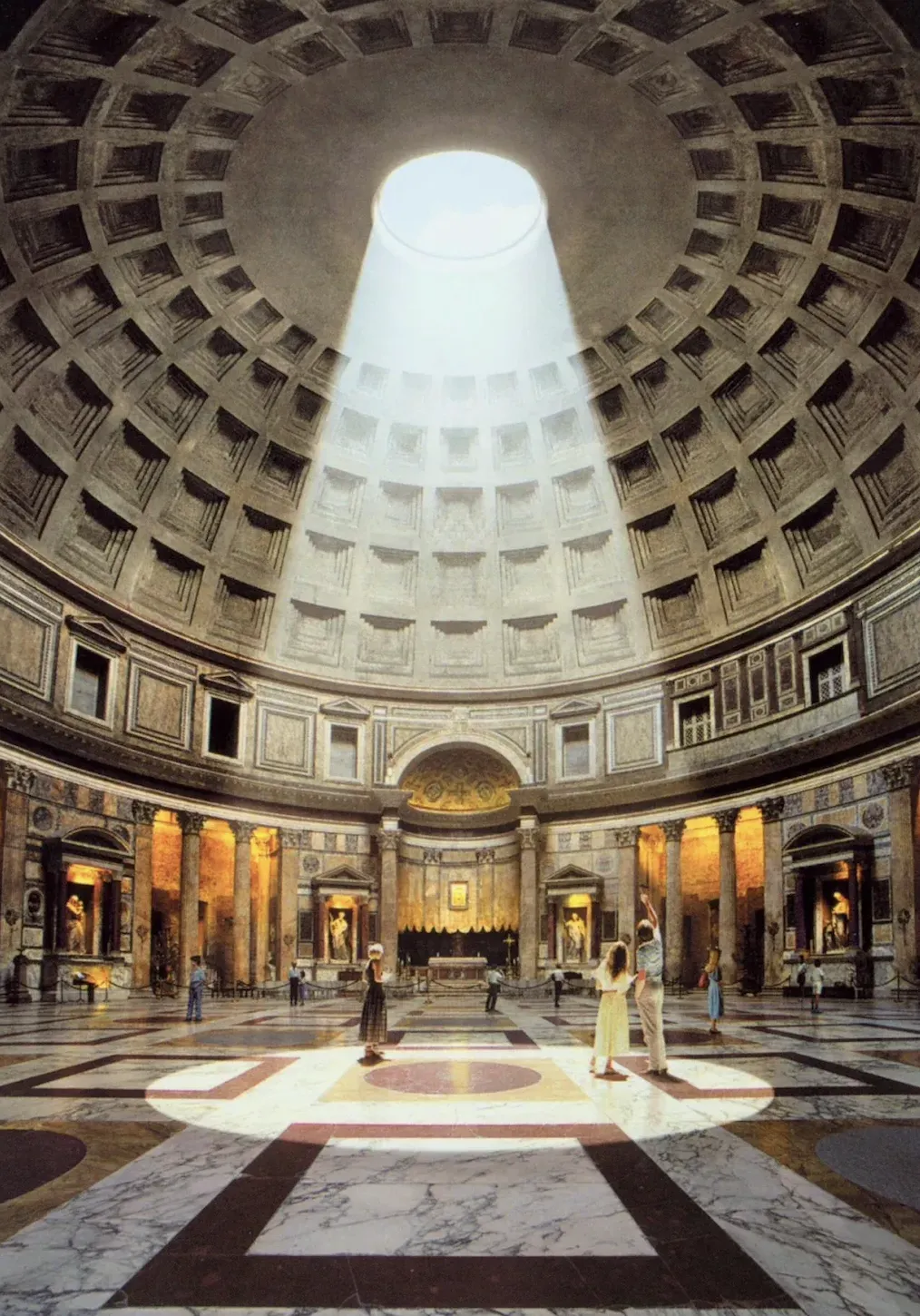 万神殿最让人震撼的是殿内没有一根柱子,43米的巨大穹顶仿佛悬浮在空中。