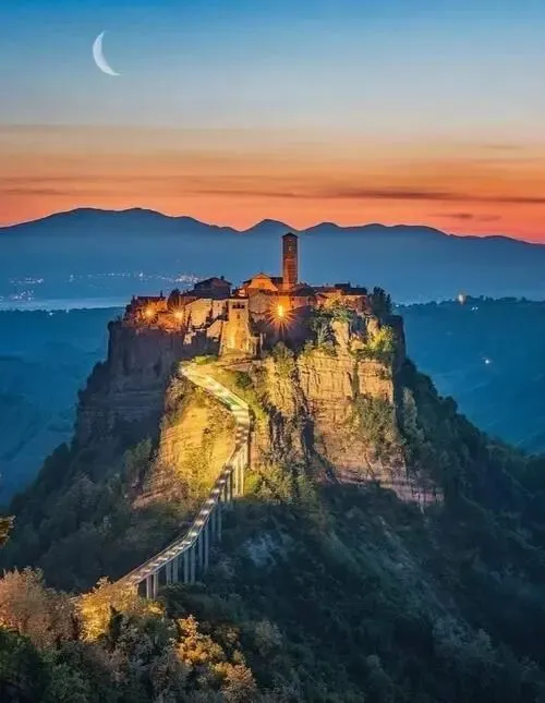 据说宫崎骏当年在意大利旅行,被这座矗立在云雾缭绕的山巅、仅靠一条长桥与外界相连的孤城深深震撼,从而构思出了动画电影《天空之城》。