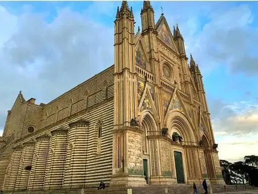 奥尔维耶多大教堂非常恢弘,金色立面在阳光下熠熠生辉。