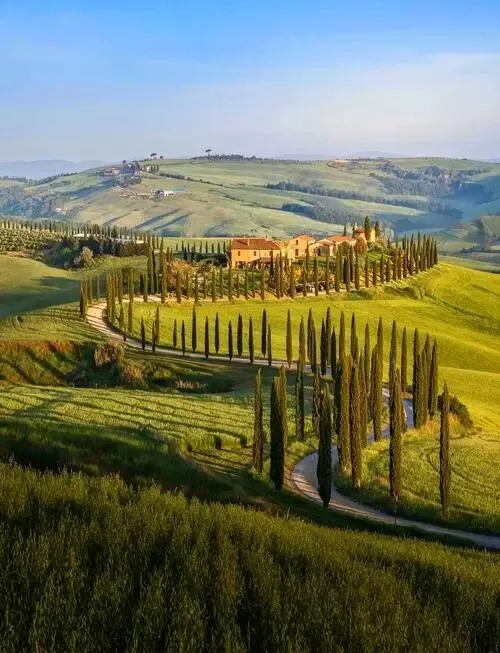 柏树大道、起伏丘陵和远处农庄,像一幅幅梵高油画。
