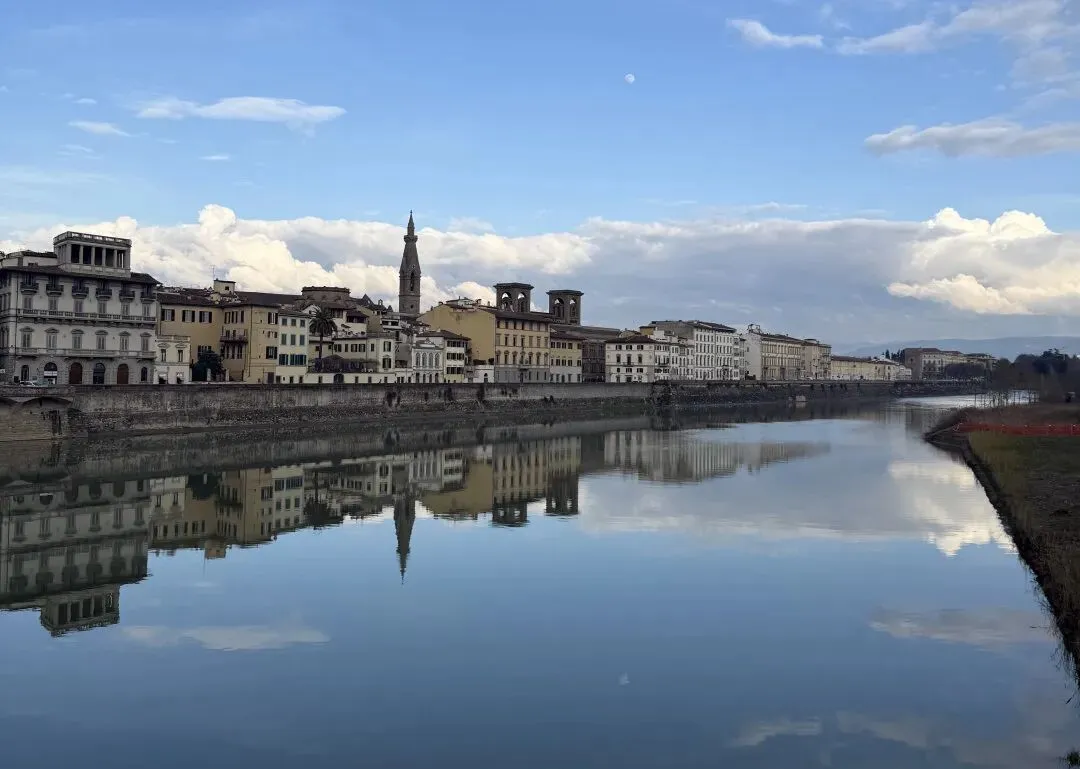 在驱车驶向佛罗伦萨的路上,冬日阳光落在起伏的托斯卡纳丘陵上,车窗外阿诺河如同一条流动的碧玉,清澈、凛冽、翠绿得让人心醉,让人突然明白徐志摩为何将 Firenze 译作“翡冷翠”。