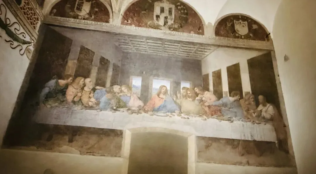 看了达芬奇的《最后的晚餐》的真迹,在修道院墙面前静静站着,感受达芬奇笔把那一瞬间的惊讶、怀疑、愤怒与不安凝固下来。