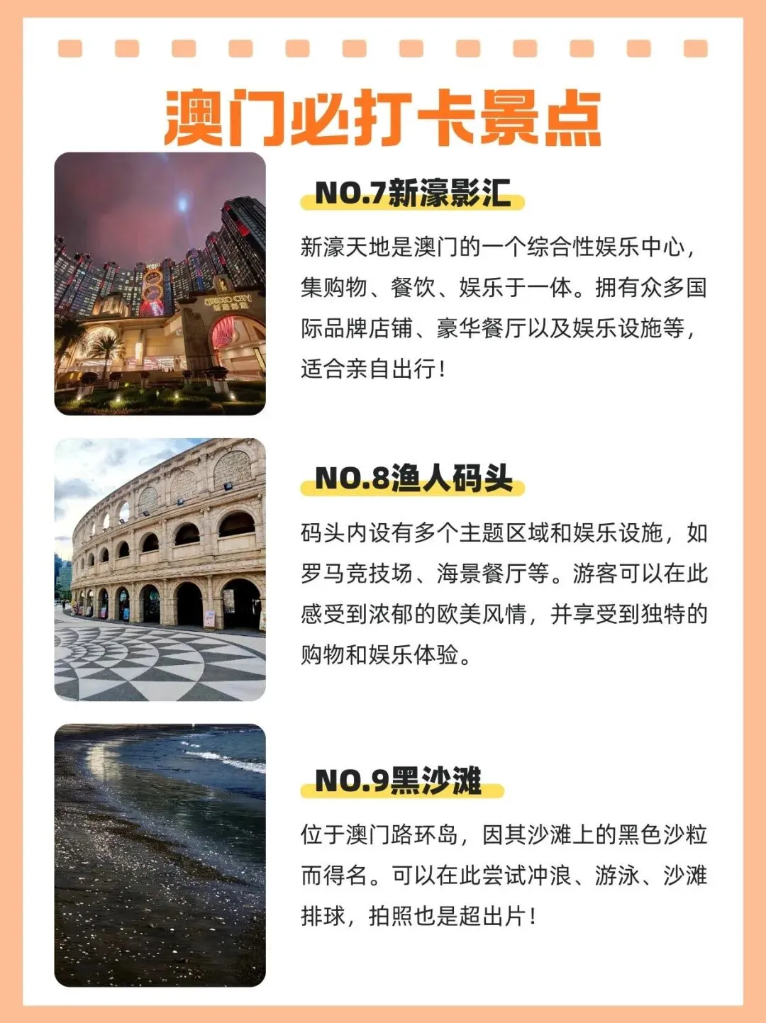 澳门唯一黑色沙滩!沙质细腻,傍晚看日落超浪漫,还能玩冲浪、沙滩排球,建议留半天去路环岛,放慢脚步感受宁静,拍照文艺感拉满~
