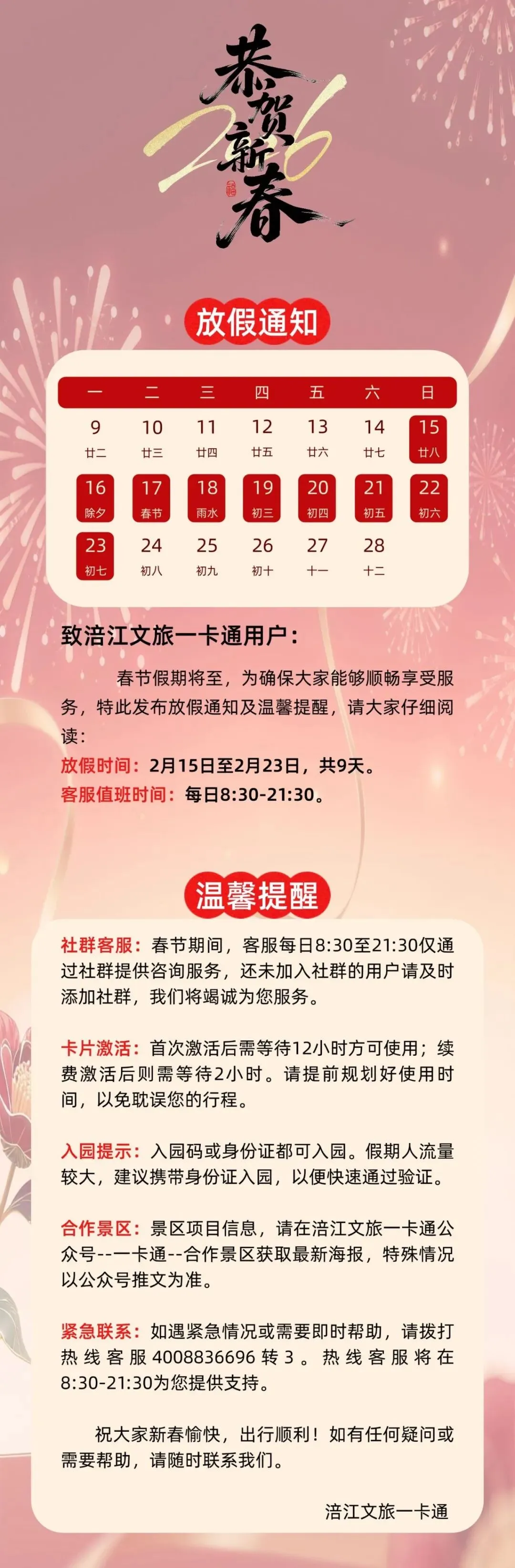 【重要通知】春节假期这些合作景区 | 影院 | 项目营业情况有调整!