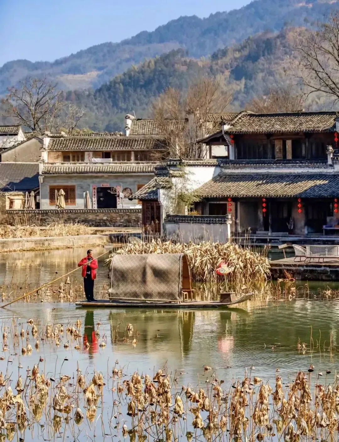 下午:周边自然研学(冬日限定轻徒步) 呈坎周边的西溪南枫杨林,冬季依然有独特景致,适合亲子轻徒步,远离人群,亲近自然。 让孩子认识冬季的植物、观察溪水、石头,进行自然探索,捡落叶、树枝,做简易自然手作。 漫步溪边古村,感受原生态的徽州乡村风貌,和呈坎的商业景区形成对比,这里的徽州村落有不同的生活状态。