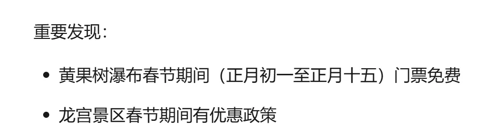 最后再抽查核实一下给出的方案,就完成了。不过由于GLM4.7给的方案实在是太详细了(11页),我不得不让它又出了一张明白纸。 由于我已经预定了黄果树瀑布的门票,KIMI给我这个重要发现时,我大吃一惊:
