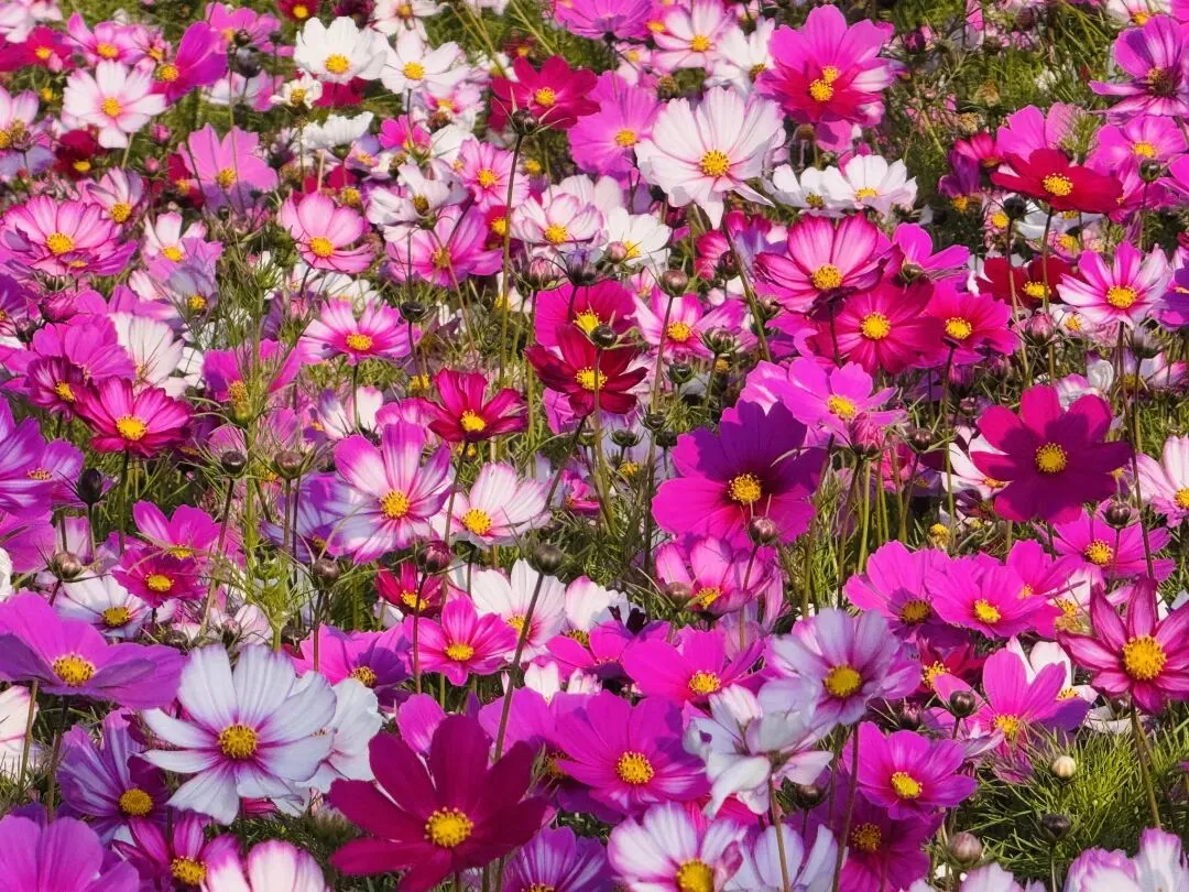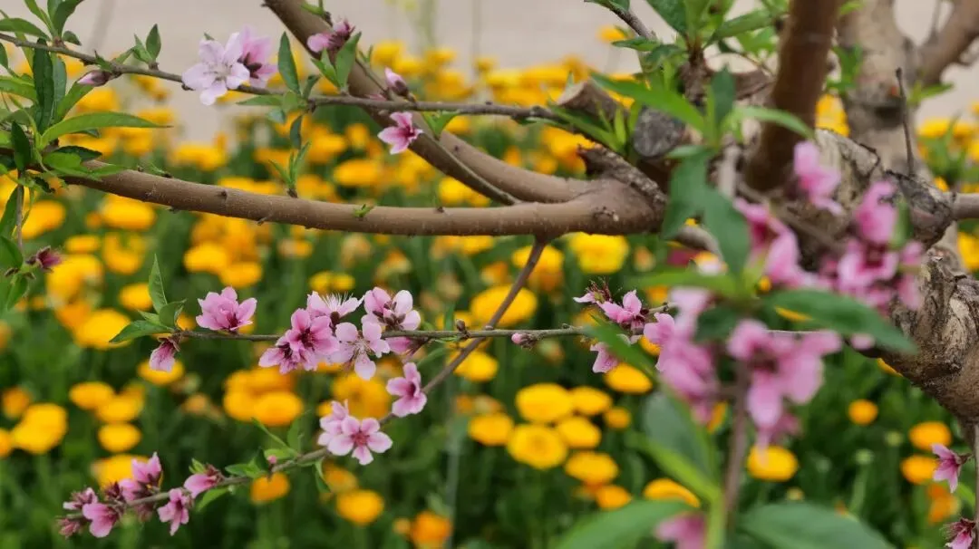 金灿灿的油菜花随风起伏,每一朵花瓣都泛着温柔的光泽,一旁的格桑花海更是浪漫满分,粉、白、紫交织成浪,宛如大地铺开的锦绣画卷,藏着“美好时光”与“幸福”的寓意。