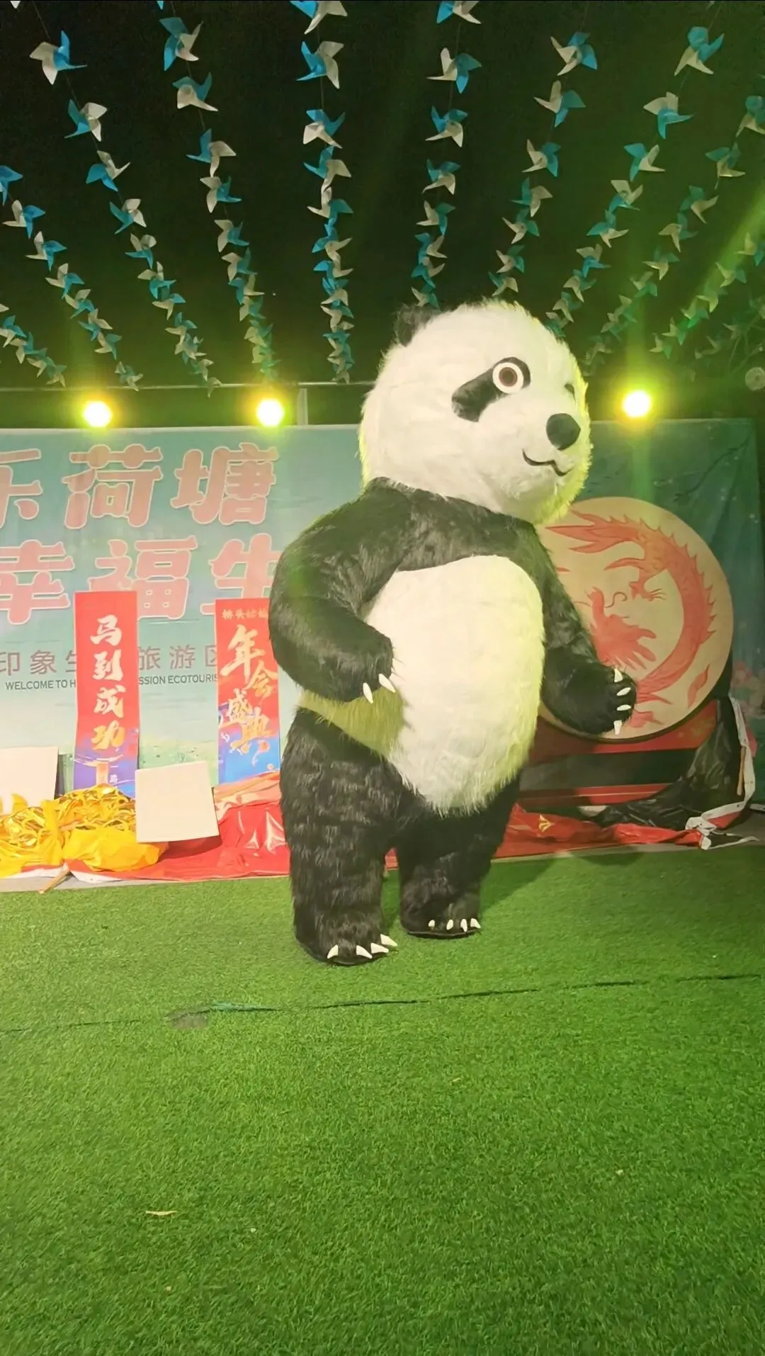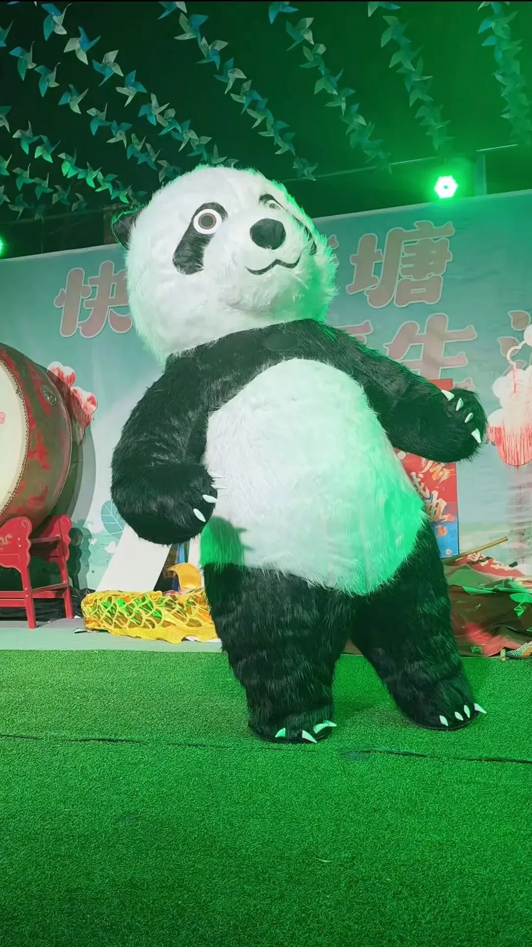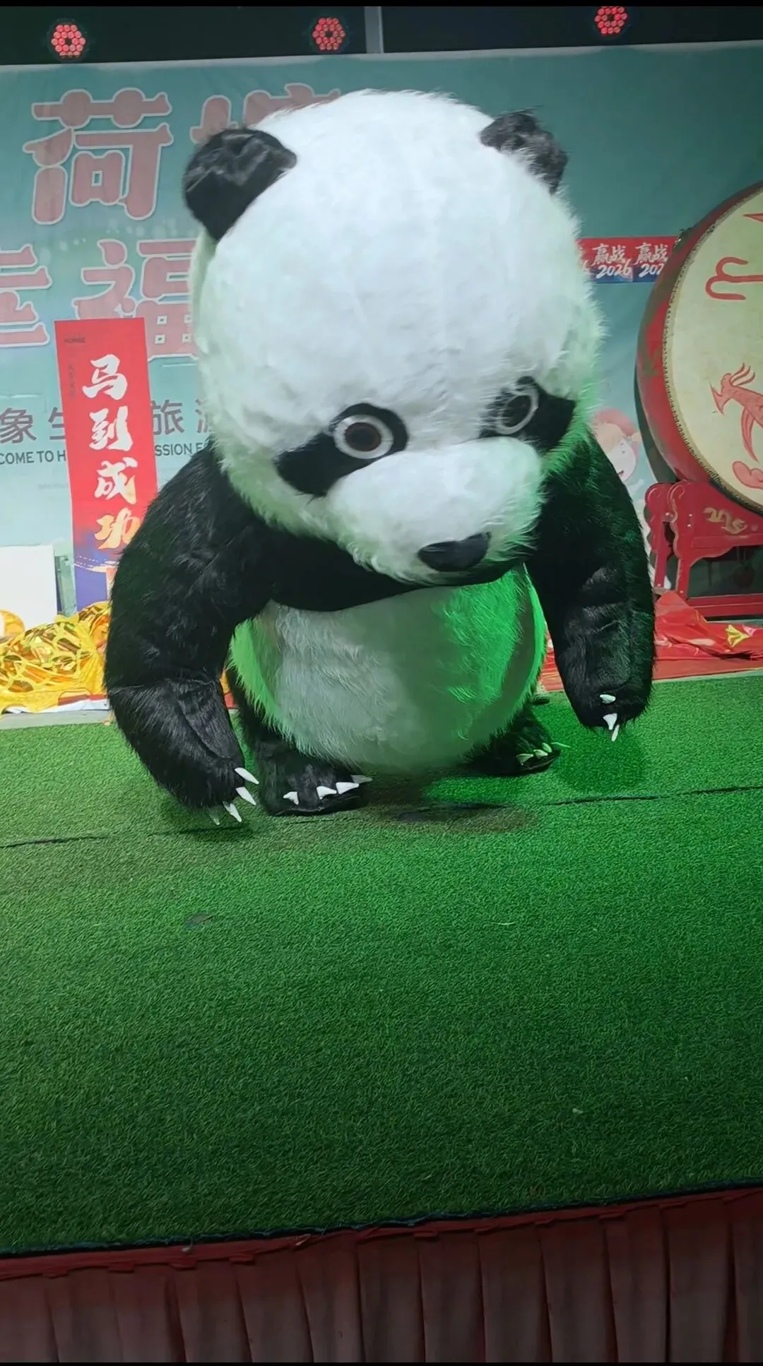 软萌可爱的功夫熊猫亲临舞台,圆滚滚的身形、憨态可掬的动作,走到哪里都是焦点