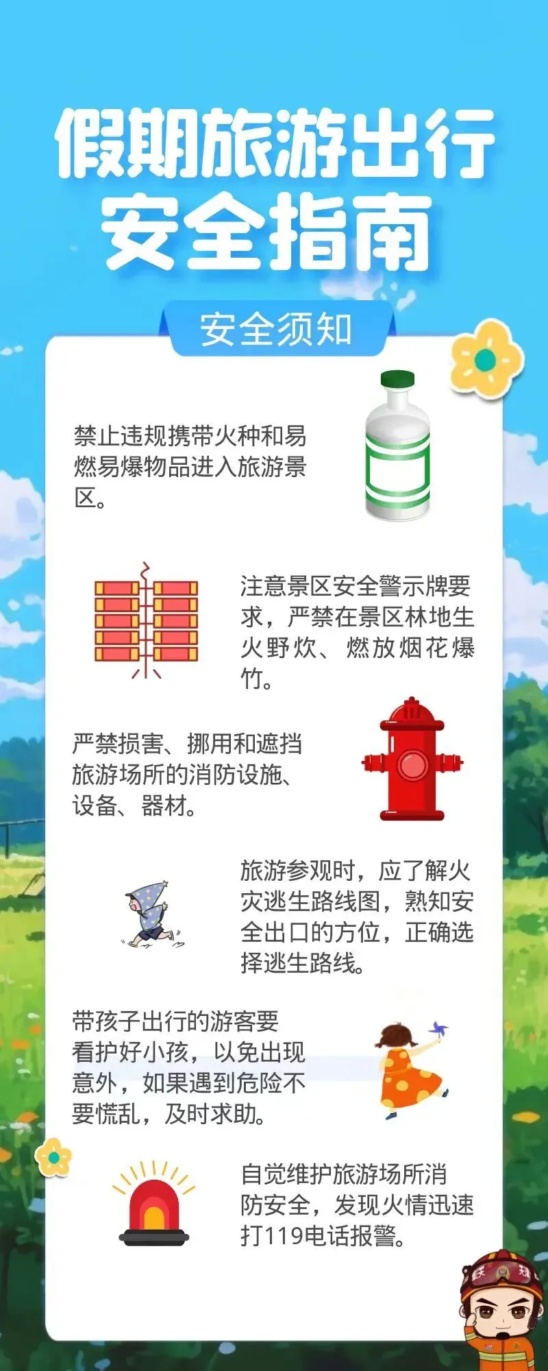 保管好个人财物,照看好老人与孩童,避免走失,确保旅途平安;
