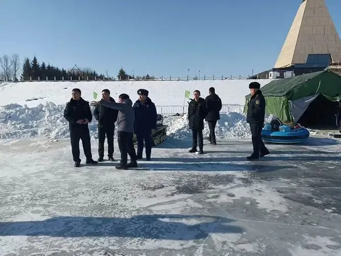 检查组重点检查了四排赫哲风情旅游景区冰雪游乐设施(如冰滑梯、雪地摩托等)的安全运行情况,包括现场安全防护措施(如防滑垫、防护栏等)及警示标识设置情况、设备维护记录、定期检测报告及操作人员资质;同时,核查景区内消防设施、应急疏散通道、安全警示标识的配置情况及景区安全应急预案制定及演练落实情况。