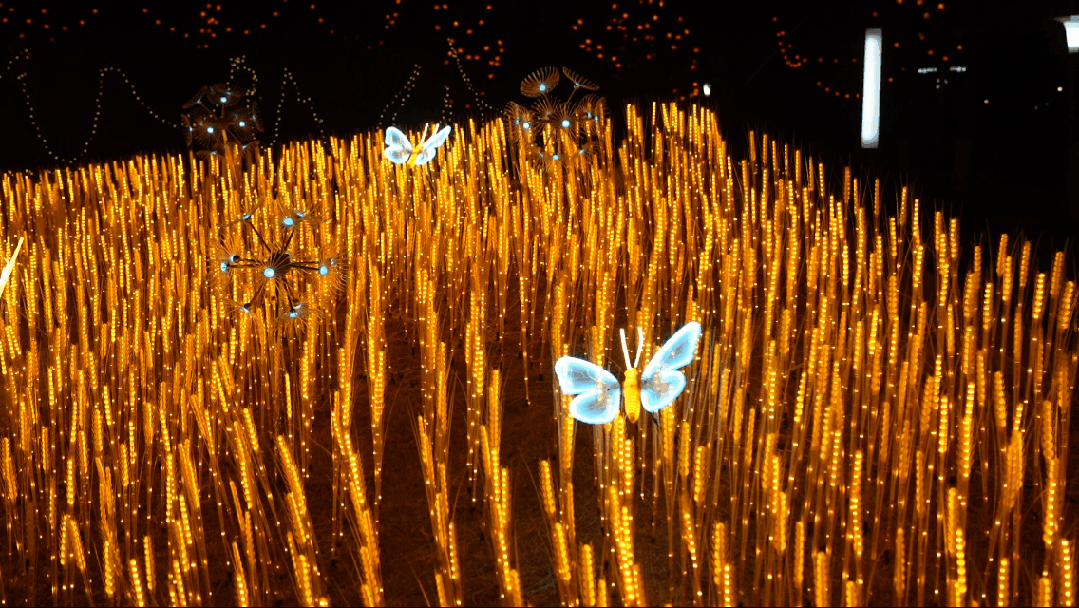 以“小泉萌宠·幻光秘境”为主题的陀罗广场,是云中河新春灯展里充满童趣与奇幻色彩的欢乐天地。广场内,“云小泉”组灯与梦幻乐园的吉祥物相映成趣:“云小泉”以新春主题焕新亮相,通体流光的萌趣模样,将马年的喜庆与灵动展现得淋漓尽致;梦幻乐园的吉祥物们也结伴登场,憨态可掬的造型与“云小泉”并肩,共同点亮了这片童趣天地。漫步广场,“忻迪小镇”灯光长廊流光溢彩,两侧的蝴蝶灯翩跹起舞,七彩羽翼在夜色中轻颤,仿佛将游人带入童话秘境;“蒲公英、麦穗”灯组铺展开金色的田园画卷,麦穗灯摇曳出丰收的喜悦,蒲公英灯点缀其间,微光闪烁间尽显自然之美。夜幕降临,北极之光主题光影秀震撼上演,将整个广场化作璀璨的幻光秘境,让游人在沉浸式光影盛宴中,解锁新春的奇幻与欢喜。