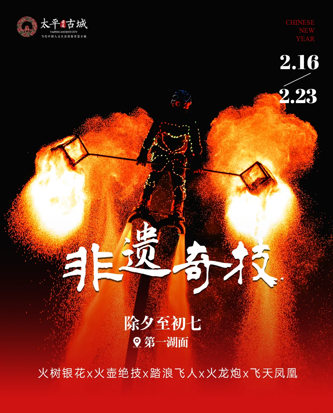 4.正月初四(2月20日):投壶雅戏、花灯DIY,感受古人过年的雅趣与浪漫。晚上篝火团圆舞会点燃新年红火,一起跳起来!