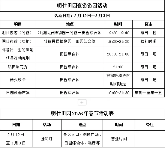 2026明仕田园新春梦幻山水壮乡年游园活动
