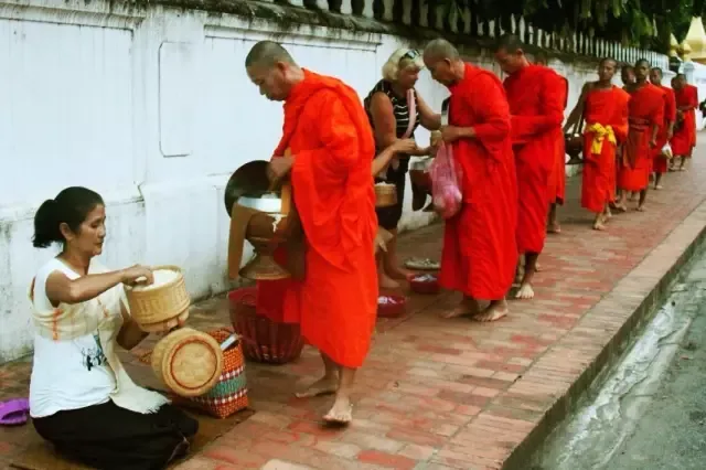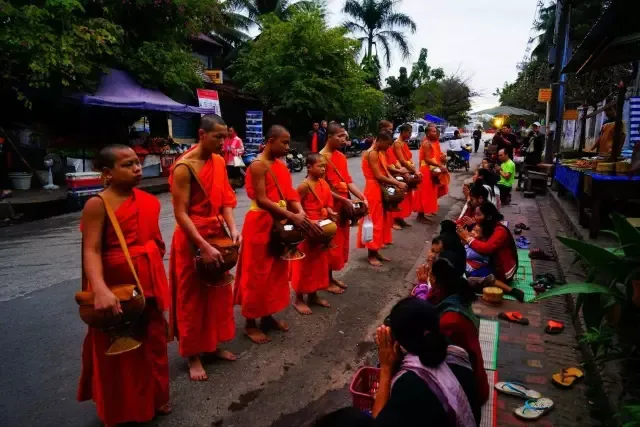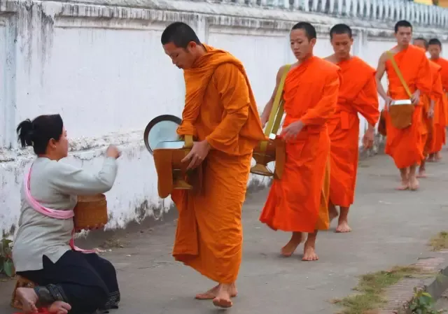 每天清晨的布施,绝对是最震撼人心的风景,僧人走在街上,大家把准备好的食物等轻轻的放到他们的手中,那是令人难以忘却的虔诚信仰。
