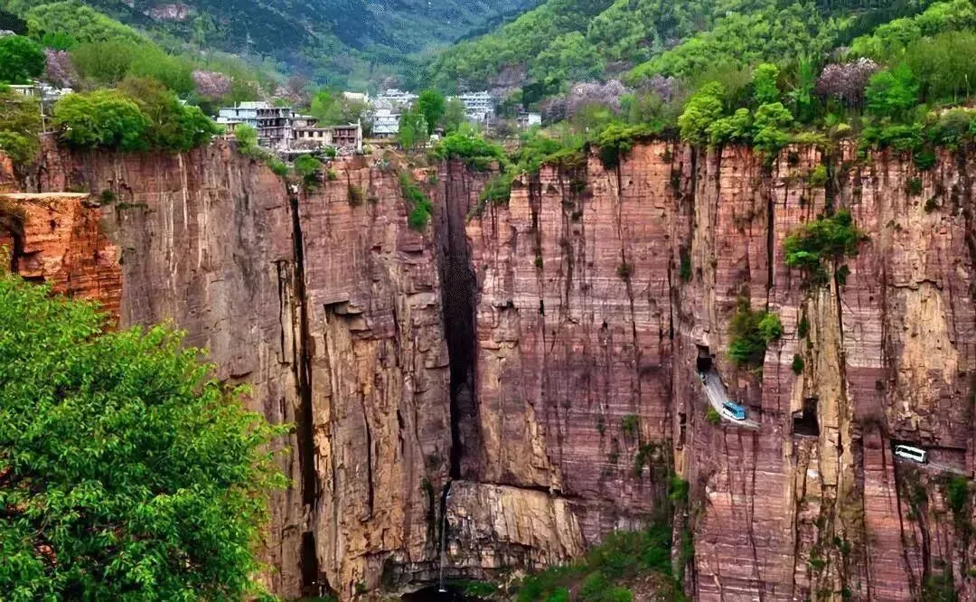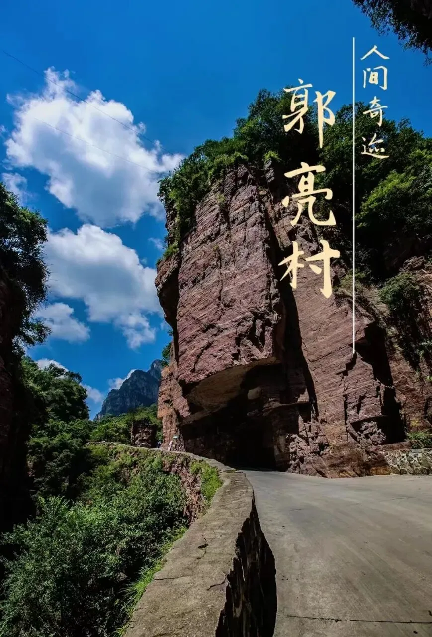 能作为作战要塞,可见其地理位置之险要。一直以来,这里的村民几乎与世隔绝,出山只有一条被当地人称作“天梯”的山道。“蜀道难,难于上青天。”而这里是“天梯险,上下小命悬。”1972年,为使郭亮村里的乡亲们走出大山,时任村干部下决心要把家乡自古流传下来的愚公移山传说和精神变为现实。他们在村里挑选了13名硬汉子,组成了突击队。大家卖掉了家里的耕牛、山羊、山药,集资买了钢钎、铁锤,决心靠自己的力量,凿出一条通往外面世界的道路。他们在无电力、无机械的状况下,全凭一腔信念一身力气,依靠自己的智慧和胆气,腰系粗绳,凌空作业,用钢钎、铁锤在太行绝壁上凿啊凿,历时五年,投工3万人,硬是在绝壁中一锤一锤凿出了一条高5米、宽4米、全长1300米的石洞,也就是现在被誉为“绝壁长廊”“世界第九大奇迹”的“郭亮洞”“挂壁公路”。郭亮村的英雄儿女们,共凿下石方2万6千立方米,用血汗给后代开辟出了一条幸福路,让后世们的梦想插上了翅膀,也把山外惊叹好奇的目光和高度的现代文明迎进了这个美丽古老的山村。