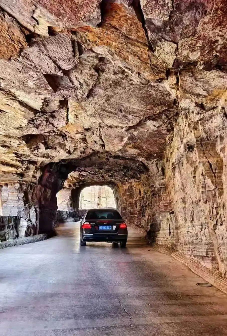 粗粝的洞口就在眼前,但又如时光隧道一般让我感觉不真实。50多年前,难道就是在这样的绝壁上,郭亮村的村民们,靠着人力,一锤一锤从那个1300多米远的对面将石山凿穿了?是的!巨大的洞口仿佛在给我们说:这不是传说,不是神话,但的确很魔幻。他们就是硬生生凿坏了12吨钢钎,砸坏了4000多个8磅重的铁锤,在绝壁边将这座石山凿穿了......