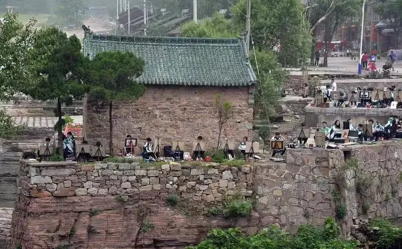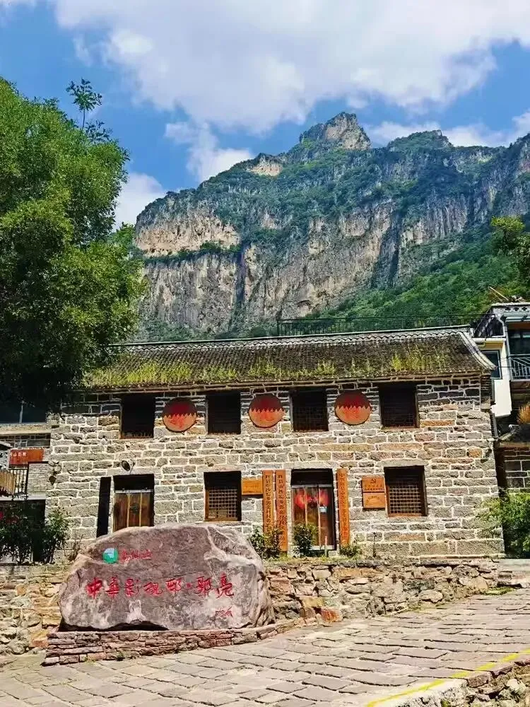 别有洞天,这个词用在这里再恰当不过。现代文明与三面环山一面临崖的自然风光完美结合在这个古老的山村里。山野茂盛的庄稼和树木让这个山村充满着生机和希望。石板铺的道路,石头垒的院墙,石块盖的房子,朴实坚硬如这里开凿岩石的先辈的品行与性格。而郭亮村的后代,则用依傍于原生态的现代艺术把一家家民宿和民俗商品店铺装点得朴拙而有韵味。现代的投屏录播设备和无线网络把这个古老山村与宏大数据模块紧紧链接。谢晋导游称郭亮村为“太行明珠”,在这里拍了《清凉寺钟声》;冯小宁导演在此选景拍了《举起手来》。这里一共拍摄过60多部影视剧,有着华夏第一影视村的美誉。沉醉间,路上竟然有游客在模仿潘长江在《举起手来》里面的表演,活灵活现,让人忍俊不禁。