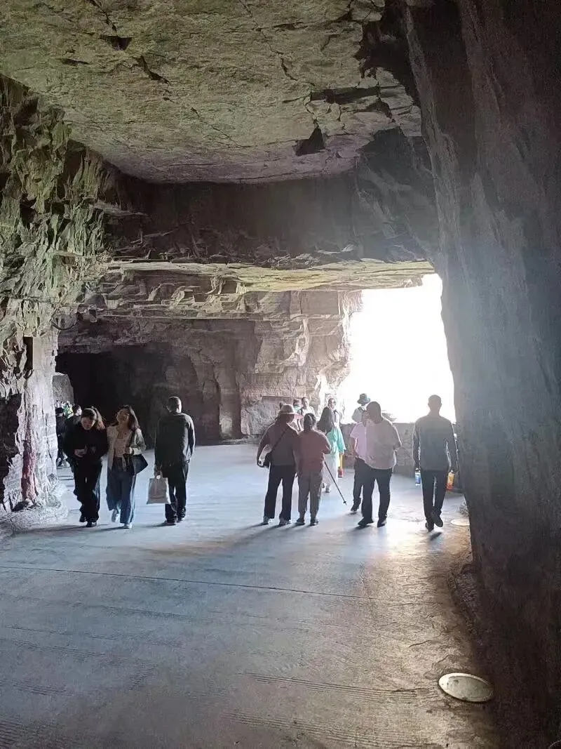 走进洞里,地面和洞壁上人工开凿的痕迹显而易见。洞壁上那一个个坑坑洼洼的凿痕,仿佛一张张急于诉说的嘴巴,要给我们把50多年前这里的故事一一诉说:村支书申明信每天看着背着背篓或挑着担子的乡亲从天梯上慢慢攀爬,看到急于就诊的病人只能用担架抬着或人背着艰难缓慢地顺着崎岖陡峭的天梯送出山去,他内心焦急万分,每晚辗转反侧难以成眠,趴在炕头眉头紧皱苦苦思索着用铅笔反反复复在纸上描来画去,终有一日他重重说出:“开山修路,让乡亲们能轻松地走出去!”一语石破天惊,至今振聋发聩,犹在山间回响。13名突击队员带头卖掉家中值钱物价,集资购买钢钎铁锤,锤头与岩石碰撞出的火花和声音,伴着他们从胸腔里迸发出的用力声响彻山谷。妇孺儿童全上阵,手搬肩扛笼子提,一方方石块一堆堆石渣里混着震裂的手掌流出的血液和从头上身上滚滚而下的汗水。一方有难八方支援,在最困难的时期,当地教育战线上的100多名教职员工用拿惯教杆和粉笔的手握住了钢钎、搬起了石头......