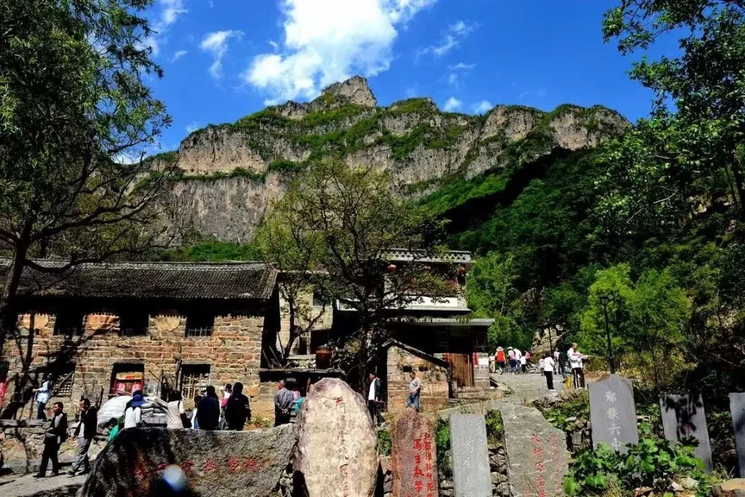我摸着坚硬粗粝的石壁,体会肉身与岩石抗衡时的冰冷与炸裂,想象信念与壁垒对峙时的顽强与抗争,回望王莽新朝时的烽烟与50多年前战天斗地的场景,愚公移山的画面复活了,村民腰系粗绳悬挂在百米绝壁上捶打开凿的年轻身影再现了。我缓缓移步,屏声静气凝视,怕惊扰了他们,怕我光鲜的着装刺激了他们。是啊,前人栽树后人乘凉,先辈流血流汗后世安享荣华是历史的必然,但后人凭吊纪念追思敬佩的虔诚必须有,发自内心做出谦恭的姿态也必须要有!于是,我来了,我们来了,他们也都来了。我们缓慢用脚步丈量这1300米用了一个多小时,他们用钢钎铁锤开凿用了3万多工时;我们酷暑走进“郭亮洞”感受到的是清凉和舒适,他们在寒冬开凿迎着刺骨寒风身上却大汗淋漓。就这样,人间奇迹在这个孕育英雄的山村发生,不可能不平凡就由这些普通的村民打破和创造。他们因向往外面的世界用血肉之躯凿出了一条挂在悬崖绝壁上可以人来车往的道路,我们因好奇敬慕亲临游访把无处安放的灵魂和打不起的精神置此拷问:是我们没他们有文化吗?是我们身体没他们强健吗?是我们技术手段或物质条件不具备吗?洞顶岩缝中顺着石壁滴答流下的涓涓细流如歌咏,无声地回答着我的拷问;穿洞而来的太行山风裹挟着郭亮村中的特产饮食香味,勾引着我的味蕾带我出了洞口走向了村中。
