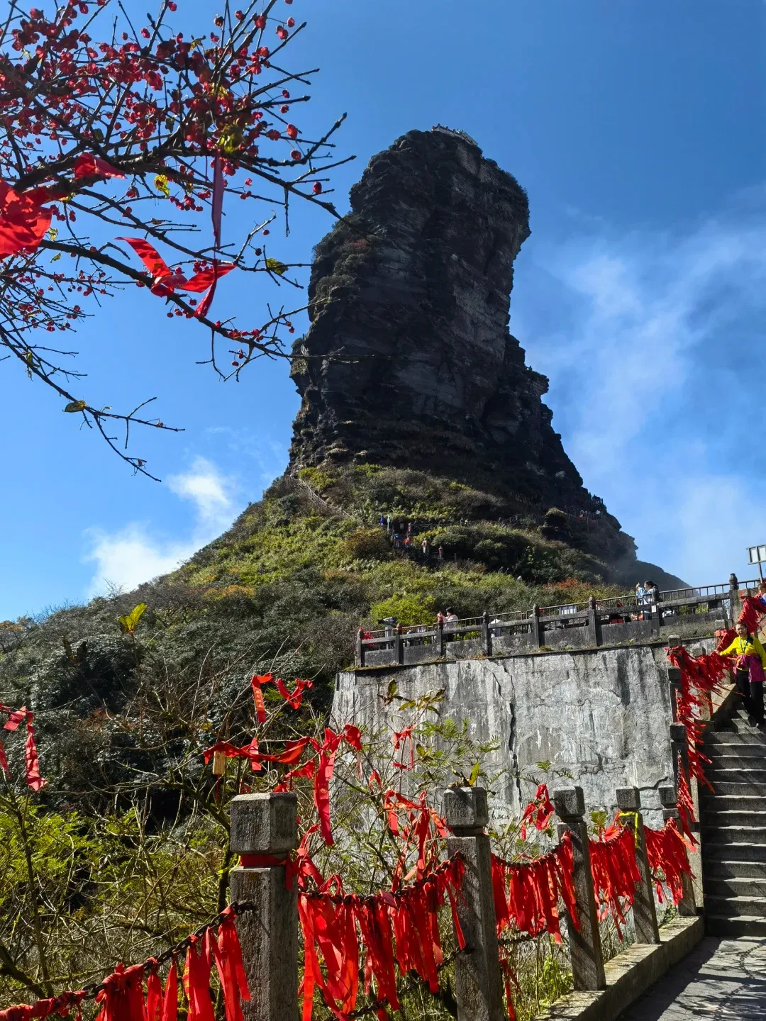 红云金顶排队会久,单线台阶窄,耐心点,别打伞挡路,雨披好使。