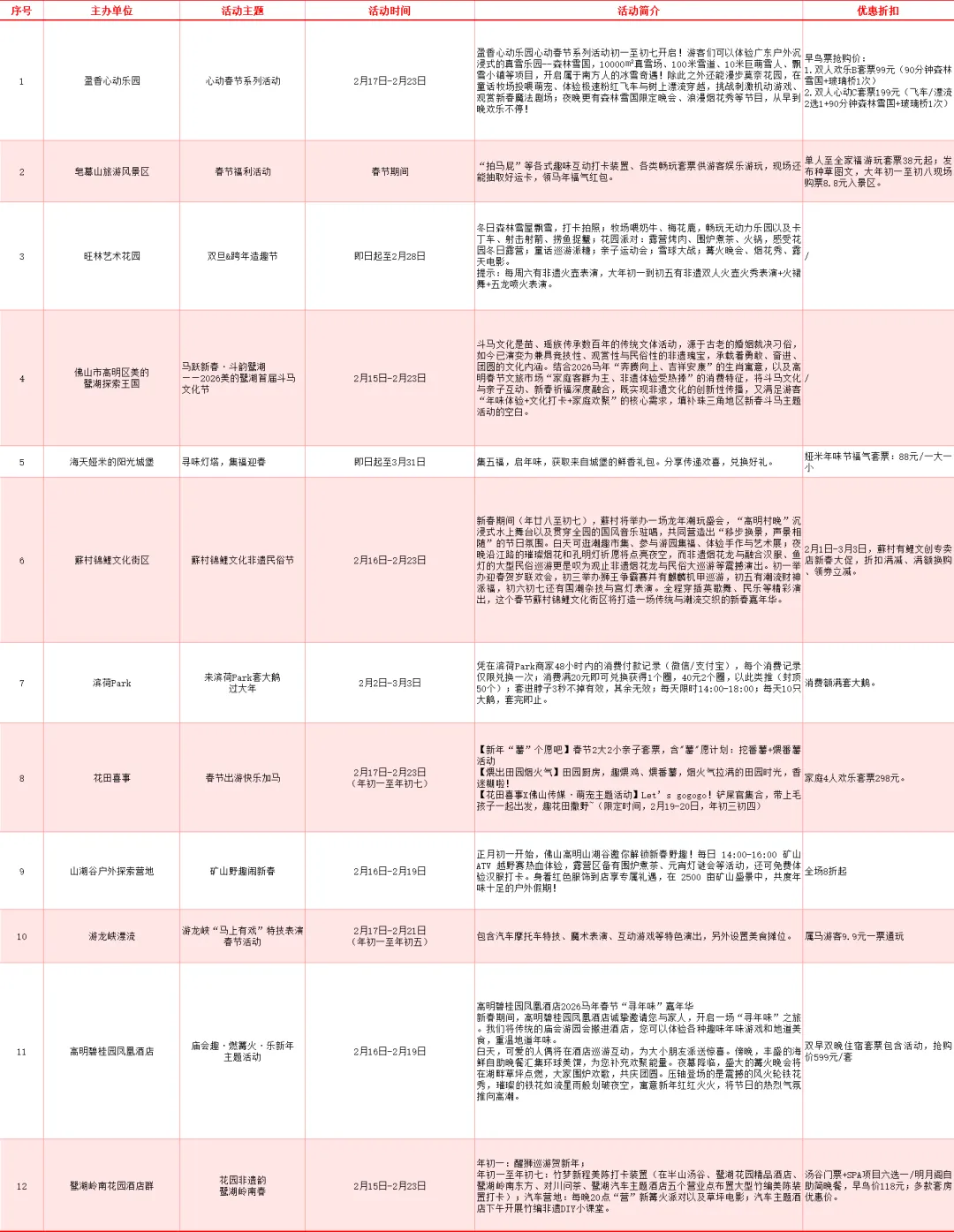 这个春节,高明景区推出多元化体验和特惠活动,满足不同游客需求: