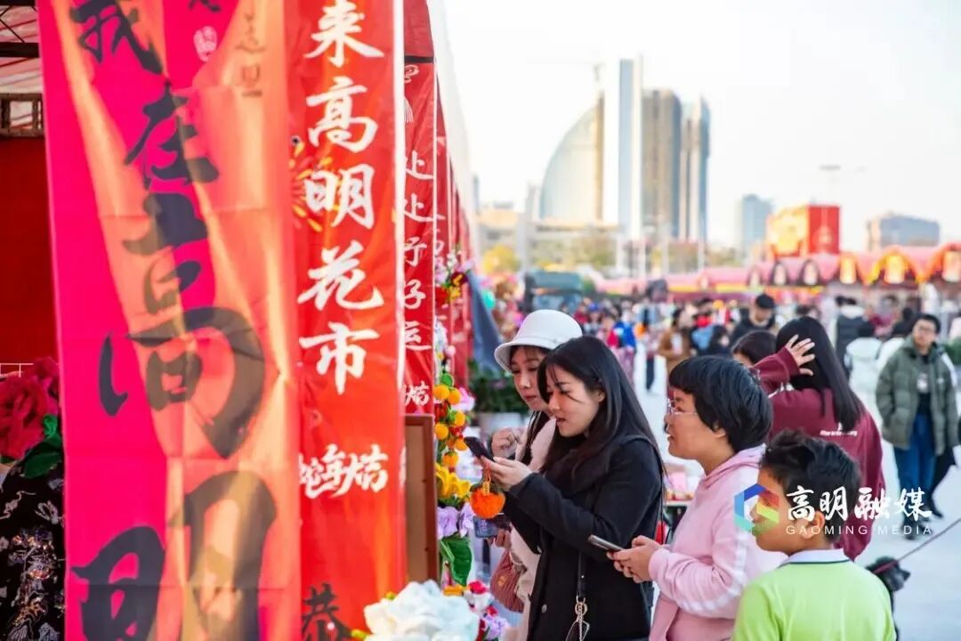 明城镇迎春花市在佛山东门圩持续24天开市。花市位于明城镇历史文化核心区,留存这老高明的商业与人文印记,这里结合圩市特色(逢1、4、7传统圩日开圩),打造集“赏花+购物+娱乐+趁圩”于一体的岭南年味盛宴。