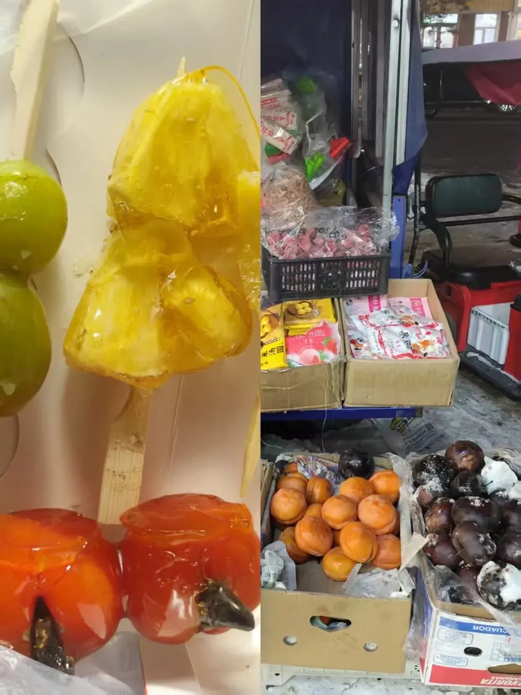接着,我们换乘地铁,前往我们位于江北大学城的民宿,我们订的民宿靠近地铁站,离冰雪大世界也近,且价格非常便宜,每晚110元。当天中午我们在附近吃了当地的山河屯铁锅炖。注意:铁锅炖最好提前订好,他会提前40分钟开始炖,建议还是吃土豆炖排骨。路边上有许多卖冰糖葫芦的三轮车摊贩,一个冻柿子只要一块五,物价感人,最重要的是非常好吃,冰糖葫芦是沙沙的口感,冻柿子等它化一点之后吃,非常甜。非常有趣的是我问冻柿子的老板为啥他家的只要卖1块多,别家卖5块,他大笑:“其实我也可以卖你5块,别人百分之两百加你的价了。”