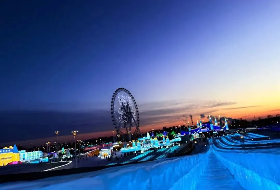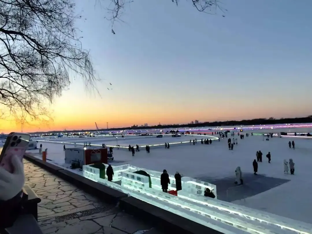 待在哈尔滨的三天我们去了冰雪大世界,中央大街,索菲亚大教堂,松花江大桥,解锁了室外10分钟睫毛结冰的体验,花了50块体验了滑冰,一直站起来一直摔倒,直到有个小朋友帮我推过来一个辅助工具,借助工具玩到力竭。注意:想要看大桥上拍落日的朋友一定要早点去,我们到的时候落日差不多快结束了,有点遗憾。在冰雪大世界排队玩滑雪圈的队伍非常长非常冷,一定要带够暖宝宝和发热鞋垫。预约项目的时候记得去大滑梯附近的德克士室内连上冰雪大世界的WIFI,没有密码,秒抢到,520米的大滑梯超美超刺激。