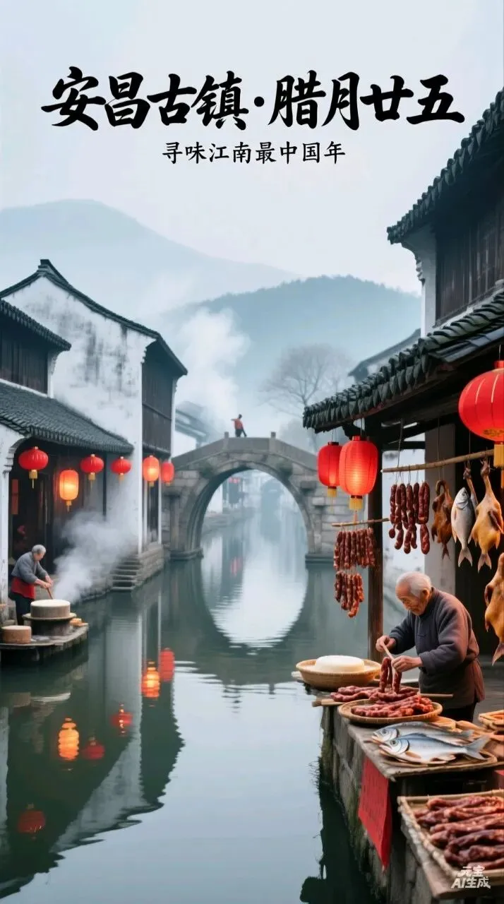 * 核心亮点: 安昌古镇保留了原汁原味的江南年俗。此时此刻,腊肠、酱鸭挂满了廊棚,空气中弥漫着腊味的香气。您可以坐一回乌篷船,看社戏,逛腊月市,感受“祝福”仪式。