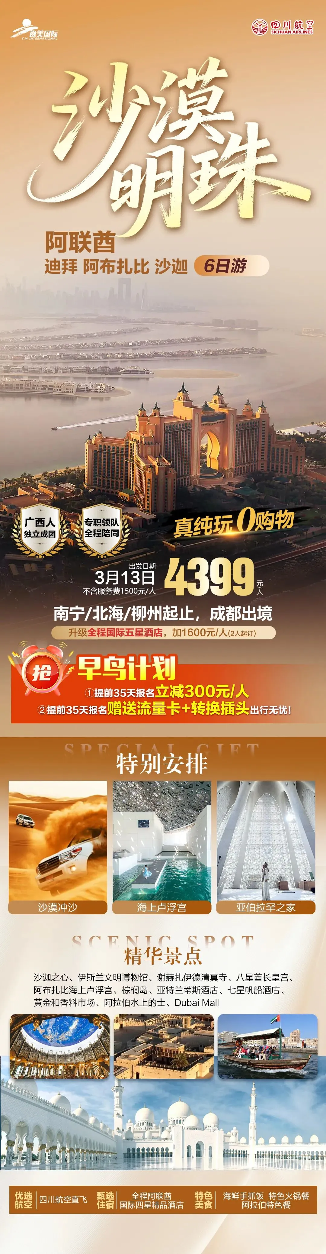 【迪拜】2-4月 春节&寒假 迪拜旅游线路汇总 报名优惠!