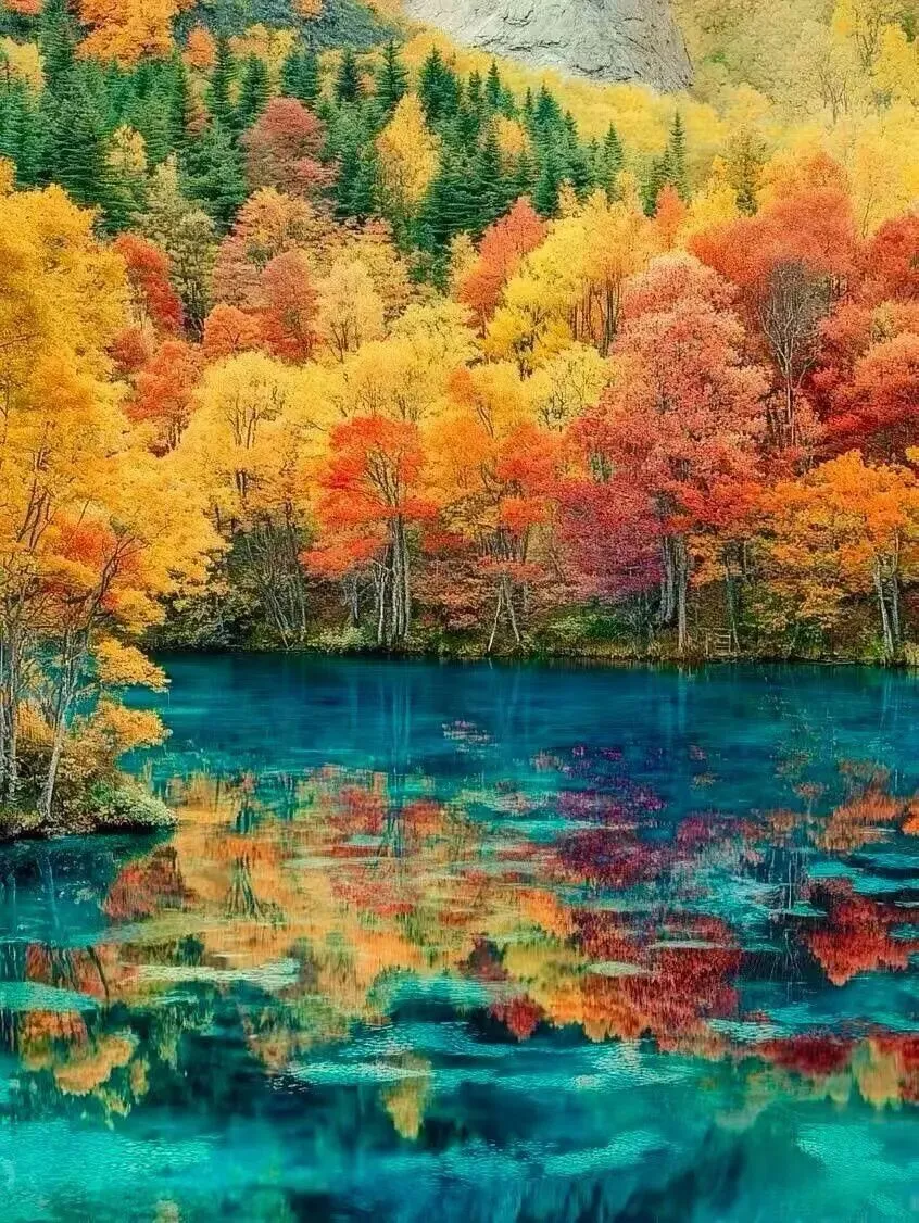 看,海子映着彩林妆;闻,清泉淌过草木芳。