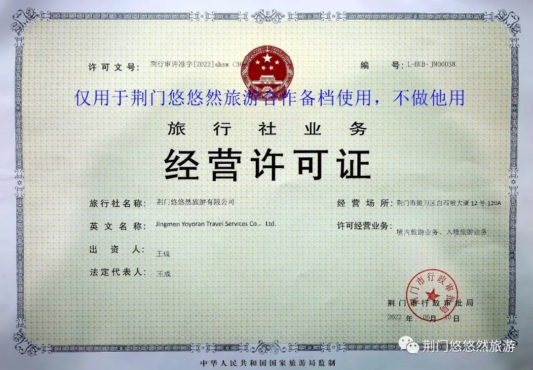 正规旅行社资质,我本人就是公司法人,我本人也是荆门鸿雁户外创始人