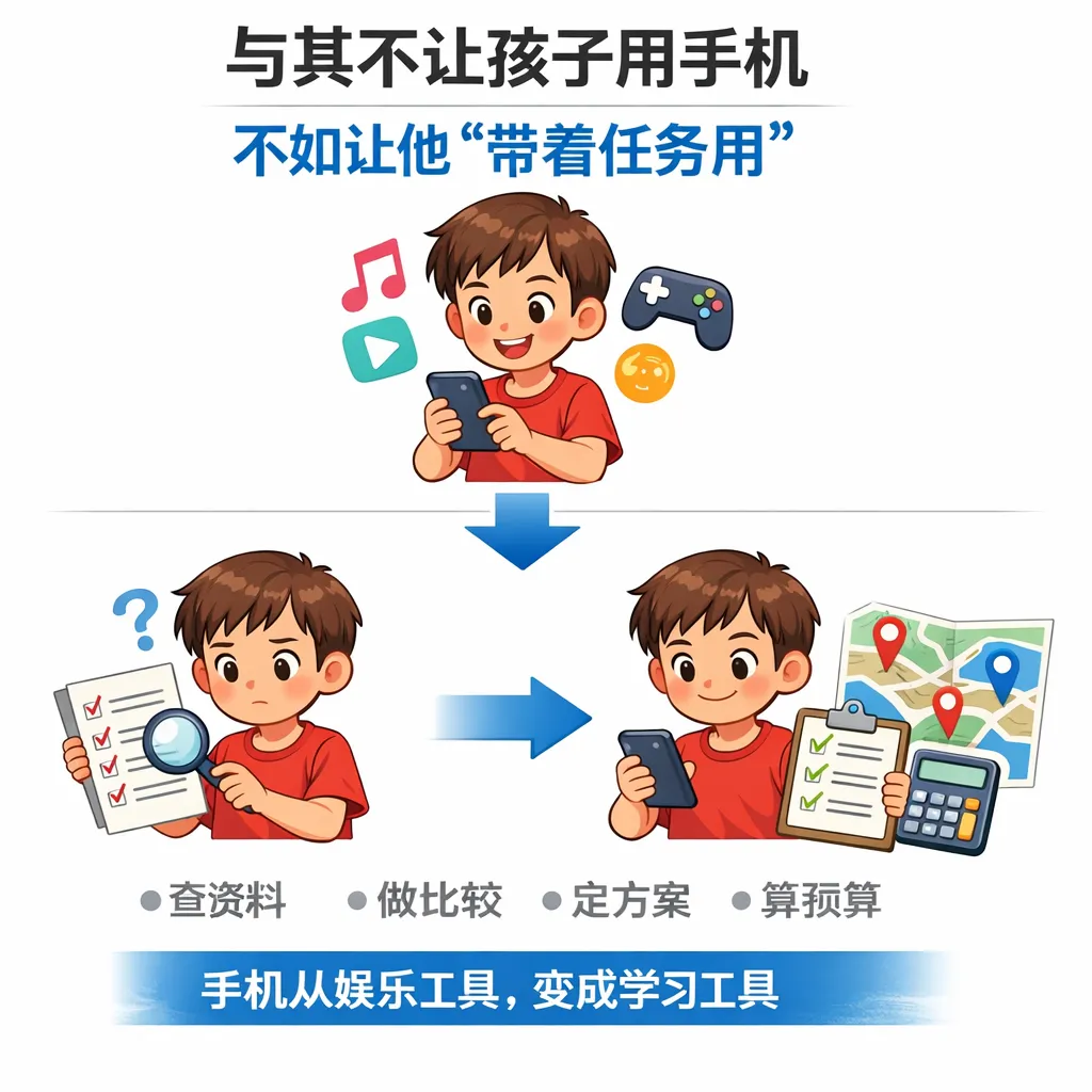 很多家长都会为一件事头疼: 孩子一有空就玩手机,怎么说都没用。 但春节旅游,恰恰提供了一个被严重低估的机会。 与其不让孩子用手机,不如让他带着任务用手机。 因为一次家庭旅行,本身就是一堂天然的“项目管理实践课”。