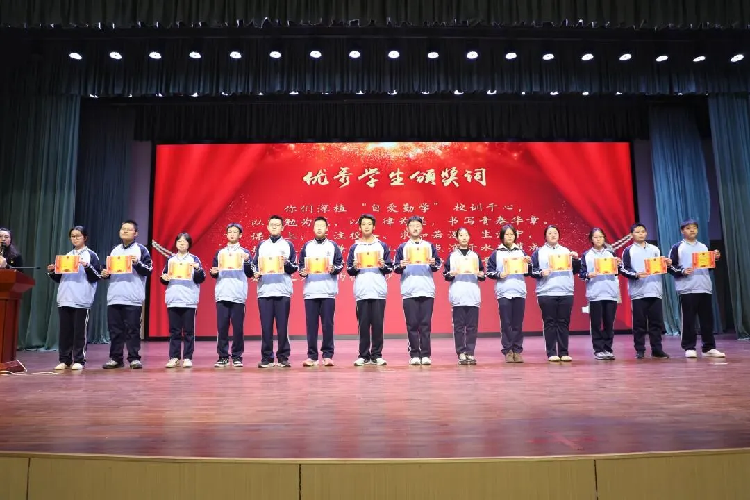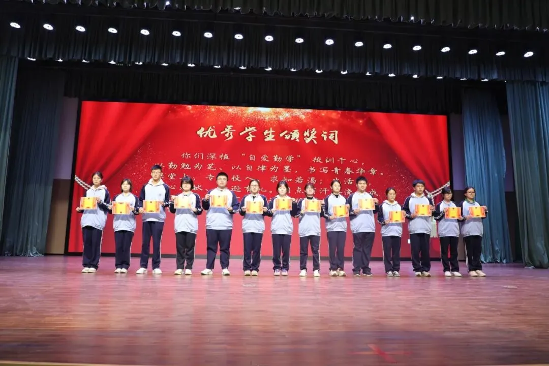 活动首先对学期中表现优秀的学生代表进行表彰。高中教学管理部负责人张伟安宣读了优秀学生、优秀学生干部、优秀团干部名单,纪委书记黄寿友、副校长杨静、高一年级主任杨欣、高二年级分管主任张伟安、高三年级主任王效层共同为获奖学生颁奖。台上青春洋溢,台下掌声共鸣,共同见证成长的高光时刻。
