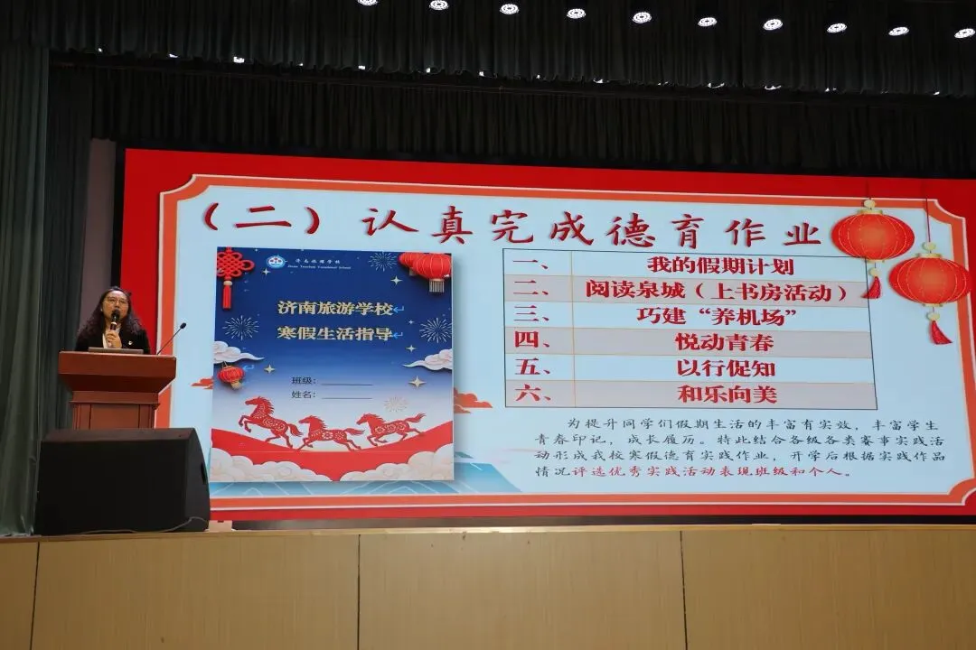 2月9日,济南旅游学校高中部2025—2026学年度第一学期休业式在温馨有序的节奏中圆满举行。活动以“表彰优秀、规划假期、强化德育、守护安全”为主线,为本学期的校园生活画上完整而温暖的句号。