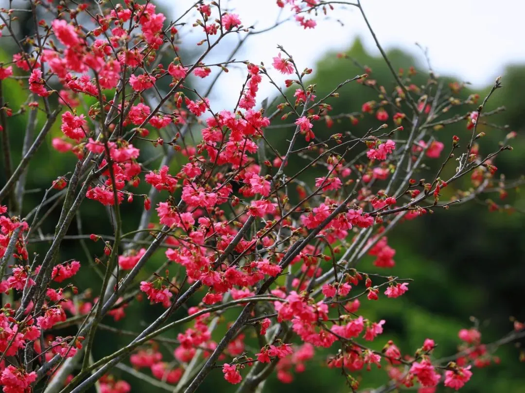 艳红的早樱花朵缀满枝头,