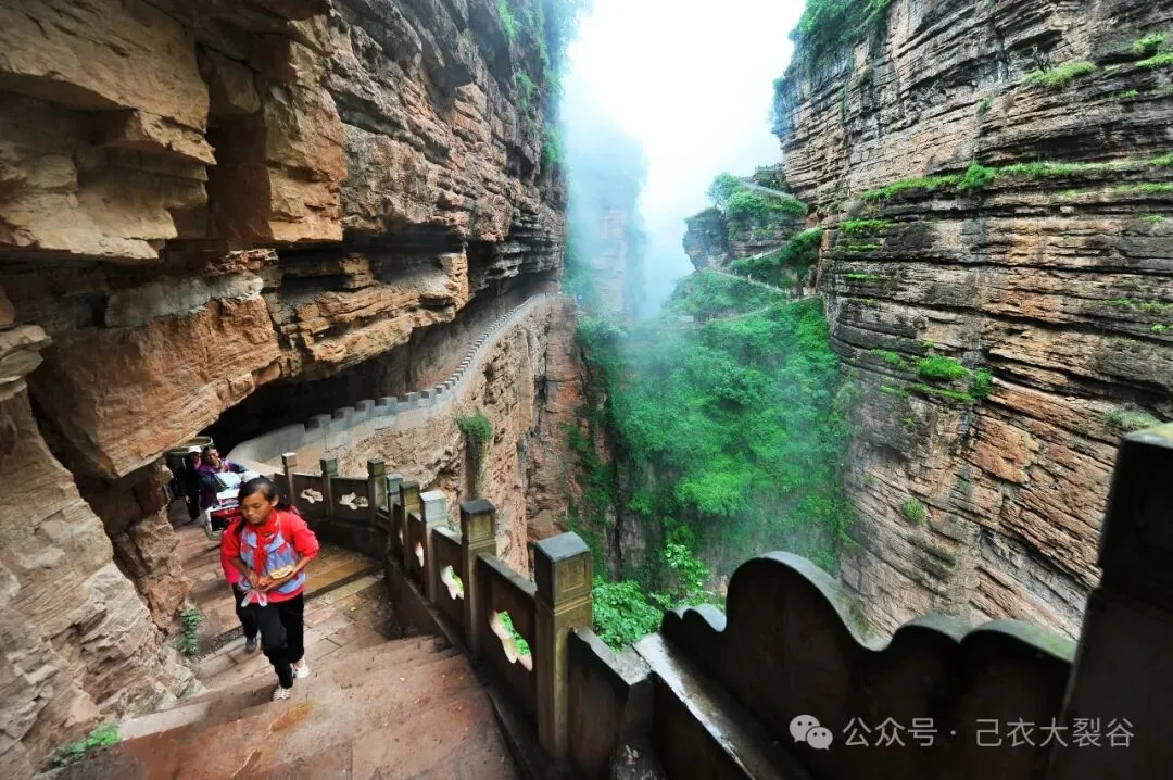 1967年5月18日,当时己衣大队130多名勇士,靠一种信念和精神,靠改天换地的气概,用双手,用大锤、凿子等原始农具、原始方法在己衣大裂谷悬崖绝壁上,凿出了一条4公里的沟渠,创造了惊天动地的人间奇迹。己衣大裂谷红旗渠彻底改变了己衣大裂谷一带人们的生存状况,己衣镇从贫困苦寒之地,变成了鱼米之乡,变成了人民向往的旅游胜地。