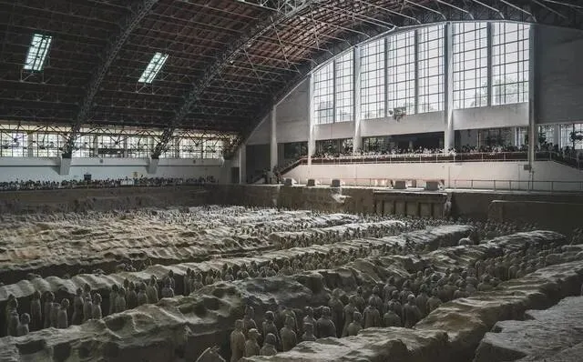 兵马俑 , 一号坑进去那一瞬间 , 真的震撼。 几千个真人大小的陶俑排成军阵 , 有的身上还残留着两千年前的颜色...你想想 , 两千年前的朱砂色 , 到现在还没完全褪掉。