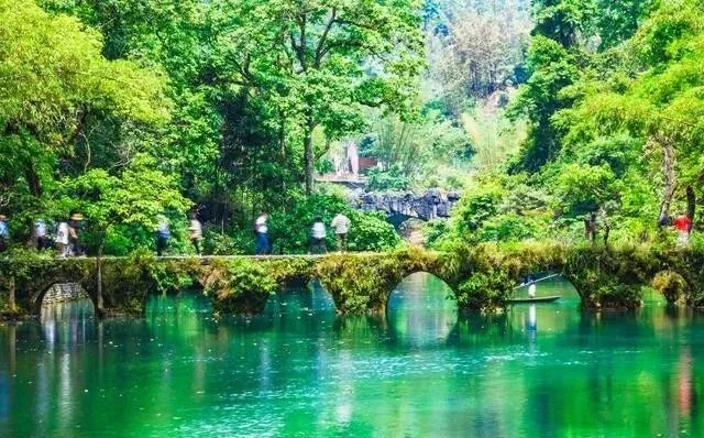 荔波小七孔 , 贵州的宝藏。 七孔石桥、68级跌水瀑布、水上森林...树直接长在水里 , 溪流从树根间穿过去 , 像绿野仙踪的现实版。
