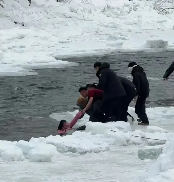 2月10日,一对母女在新疆喀纳斯游玩时,不慎双双掉入冰冷的河流。危急时刻,当地多名驾驶员上前救援,将母女二人救援上岸。这一幕被附近游客拍摄下来发布到网络,不少网友给这些勇敢热心的新疆大哥点赞。