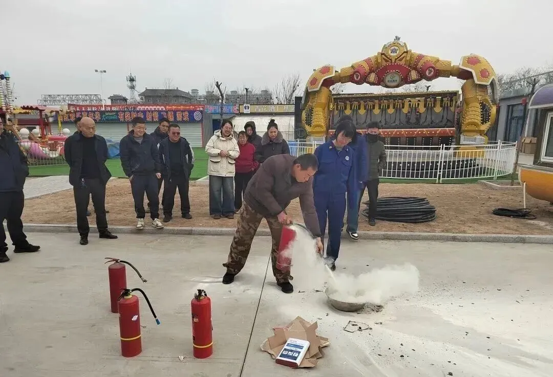 汾阳大队走进辖区景点,游乐场,开展消防安全宣传培训活动,普及消防安全知识,营造浓厚的节前消防安全宣传氛围。培训中,宣传员详细讲解了火灾预防措施,包括日常防火巡查要点、电气设备安全使用规范、易燃物管理要求等内容,强调景区要落实消防安全责任制,加强重点区域、重点时段的消防安全管理。在灭火技能实操环节,首先对常见的灭火器材,如灭火器等的性能、适用范围和操作方法进行了细致讲解。“灭火器使用要牢记‘一提、二拔、三握、四压’的口诀,对准火焰根部进行喷射……” 宣传员一边讲解一边进行示范操作,动作规范、要领清晰。