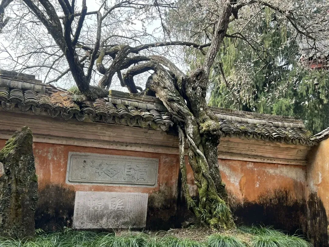 最让我动容的,是那株1400年的隋梅。它植于隋代,由智者大师亲手栽种,如今依然虬枝苍劲,在早春的风里绽放出淡粉的花朵。我站在梅树下,看花瓣簌簌落下,落在青石板上,落在僧人的青衫上,仿佛穿越了千年的时光。这株老梅,见证了国清寺的兴衰更迭,也见证了无数禅者的修行之路,它的每一朵花,都是时光的馈赠,每一缕香,都是禅意的回响。