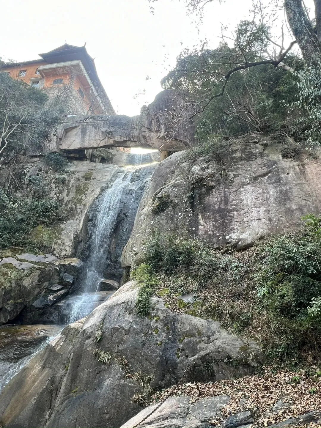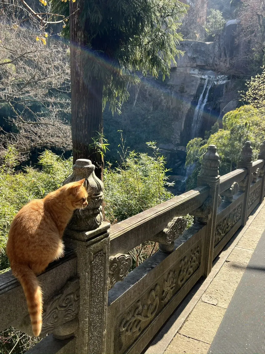 除了国清寺,我还去了石梁景区。这里是天台宗的重要修行地,石梁飞瀑如白练悬空,水流冲击着岩石,发出震耳欲聋的声响,却让人内心愈发平静。沿着山间步道前行,两侧的古木参天,偶尔能看到僧人在溪边打坐,山水与禅意在此刻融为一体,让人忘却尘世的纷扰。