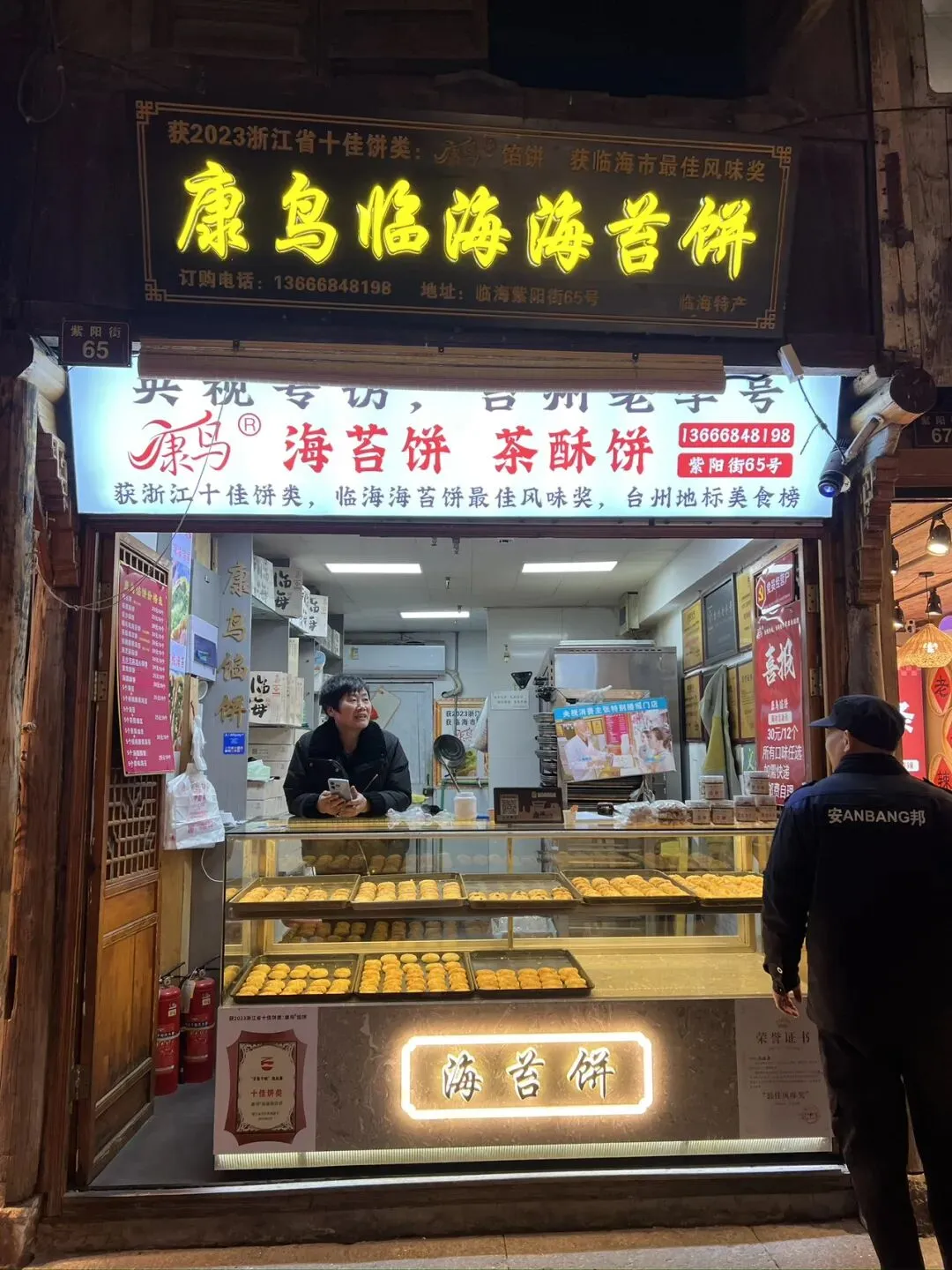 紫阳古街是临海的灵魂所在,这条全长1080米的老街,从南朝至今,始终保持着原有的风貌。青石板路被岁月磨得发亮,两侧的店铺鳞次栉比,有卖海苔饼的老字号,有做麦油脂的小吃铺,还有卖传统手工艺品的小店。