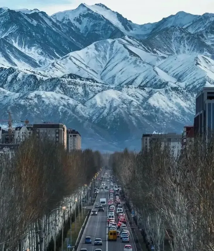 首都比什凯克:被誉为“多彩的艺术之都”,坐落在天山山脉的怀抱之中,四周雪峰环绕,漫步城市,抬眼便是巍峨雪山,壮美且震撼。